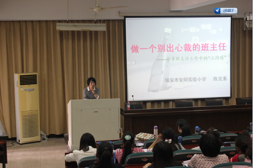 为进一步拓宽小学教育专业学生的知识面,给未来的小学教师们传递实践性的教学理念,10月17日下午一点三十分,williamhill官网小教系在北校3幢101室举办了第二次名师大讲堂活动,瑞安市安阳实验小学有着22年丰富班主任经验的陈克素教师担任本次讲堂的主讲人,讲座主题是“做一个别出心裁的班主任”,本次活动由小教系主办,小教工作室承办,小教系教师谭莉博士主持。