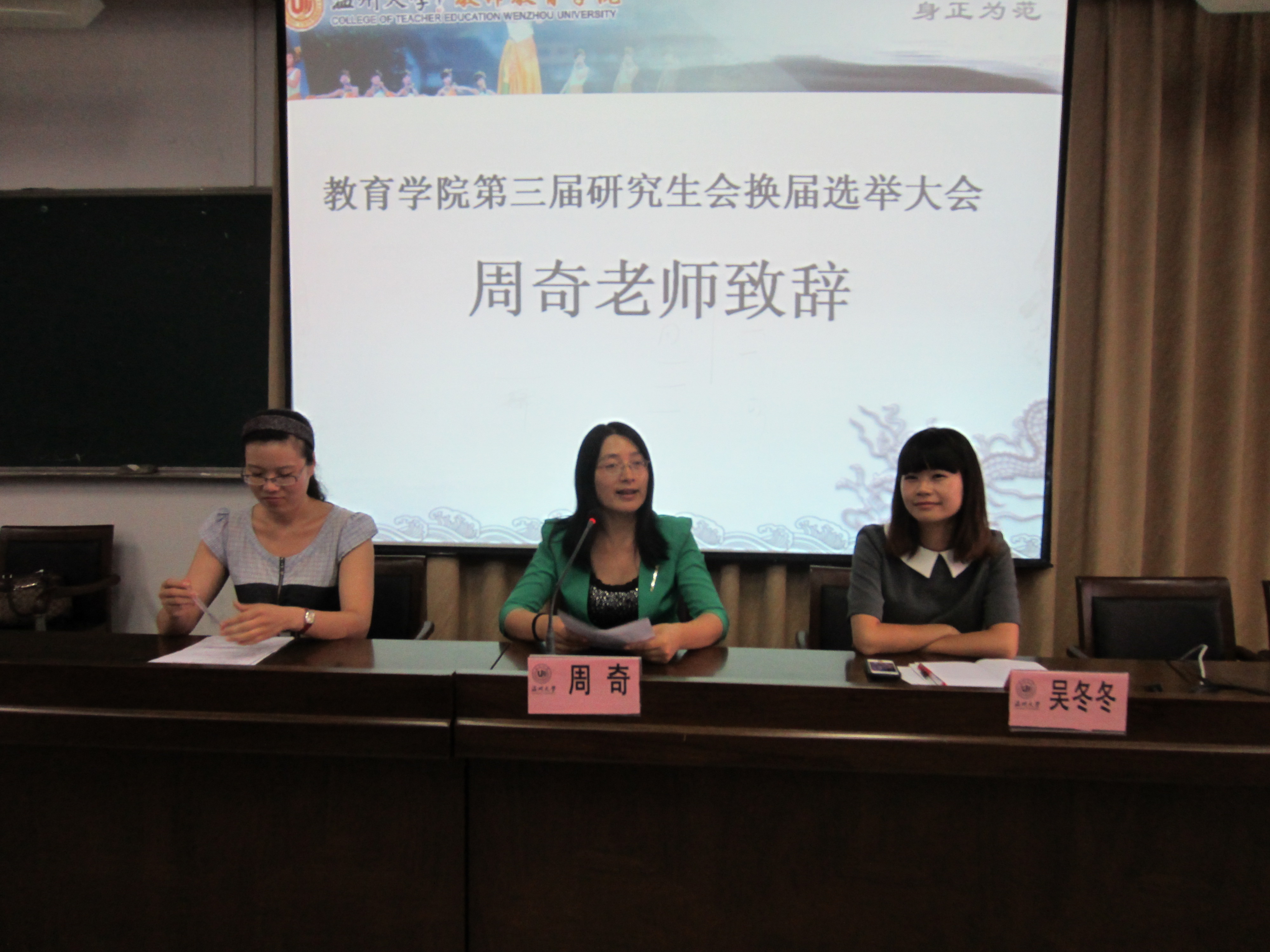 9月26日下午13:30,我院第三届研究生会换届选举大会在北校区3-101教室举行。本次大会主要目的是对2011-2012年度研究生会工作进行汇报并同时进行研究生会干部第三届换届选举,出席人员主要有教育系周奇老师、学生科吴冬冬老师以及williamhill官网的研究生同学。