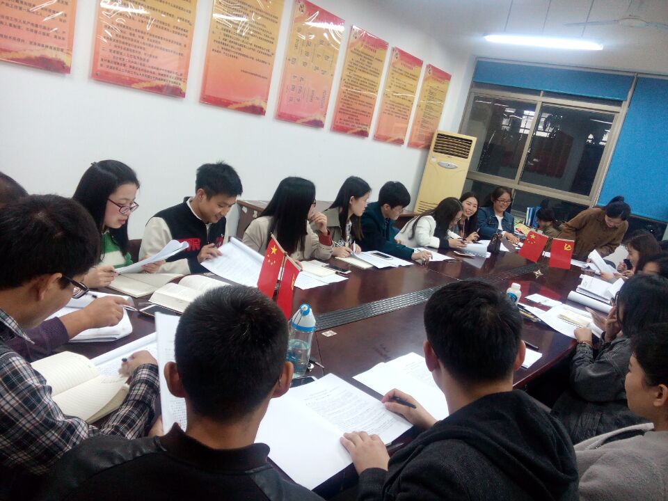 首先各研究生党员在认真观看PPT,对此次要学习的两份文件和全会精神有一个整体的认知。之后以集体诵读和小组讨论的形式对《关于新形势下党内政治生活的若干准则》和《中国共产党党内监督条例》两份文件进行了深入学习。在各位党员完成对两份文件的内容的诵读后,大家自由讨论,结合自身实际发表自己的看法。2016级的研究生新生党员潘龙飞同学跟大家分享了他的认识,他从自己的专业背景、专业知识等出发,结合全会精神,与在座新老党员们分享了如何才能做一名合格党员的心得体会。侯利兵同学则联系自己的校园生活实际,用真挚朴实的语言,与大家分享了在新的环境中要如何实现“自我完善”、“自我提高”和“自我发展”。会议在新老党员的思想交流达到了高潮。在思想交流中,研究生党员同志们提出了有关提高研究生党支部党内生活质量和党内监督的建设性建议。