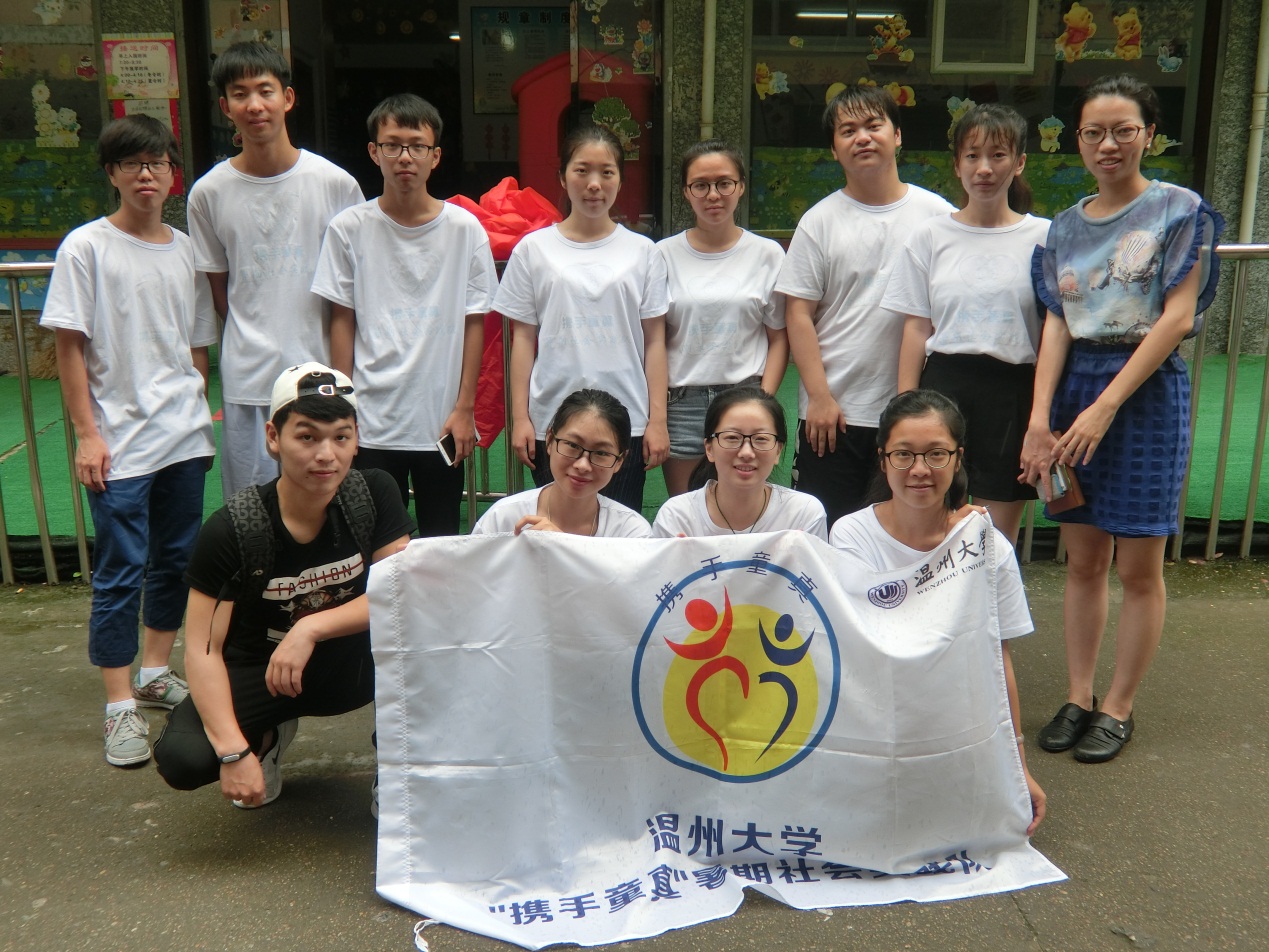 图为2016年7月10日,williamhill官网院长郑信军、党总支副书记杨丽君、指导老师邓纯考、辅导员严晓秋参加关爱侨乡留守儿童实践队的开营仪式并进行慰问