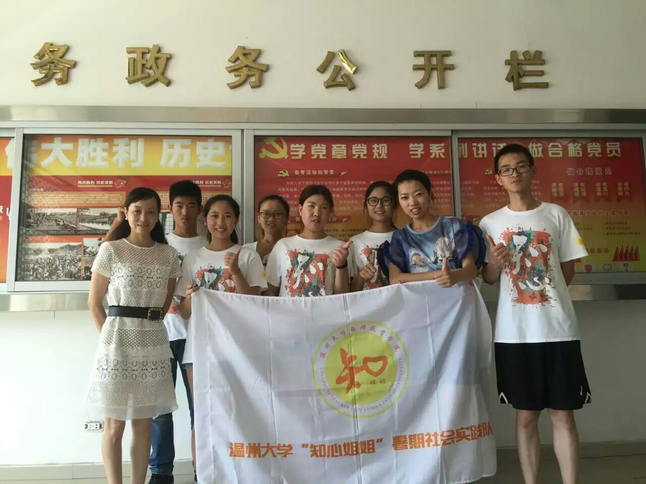 图为2016年7月11日辅导员严晓秋老师、邵胜男老师慰问在丽水青田实践的携手童真实践队