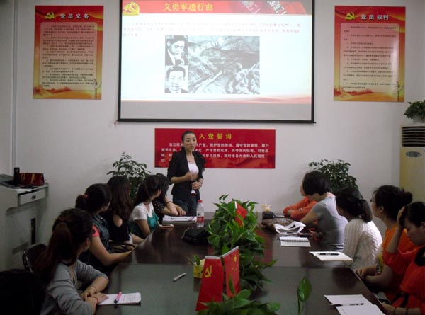 为扎实推进基层组织建设年建设,提高学院的党建示范点工作影响力,继3月28日学前教育系教工支部开展“红歌背后的故事” 之长征歌曲讲座之后,5月2日,该支部在学院“党员之家”再次推出了由陶陶老师主讲的“红歌背后的故事”之抗日战争歌曲讲座。学前系书记林琛琛、学生科辅导员胡仲仲、学前系学生支部全体学生党员及部分入党积极分子参与了活动。