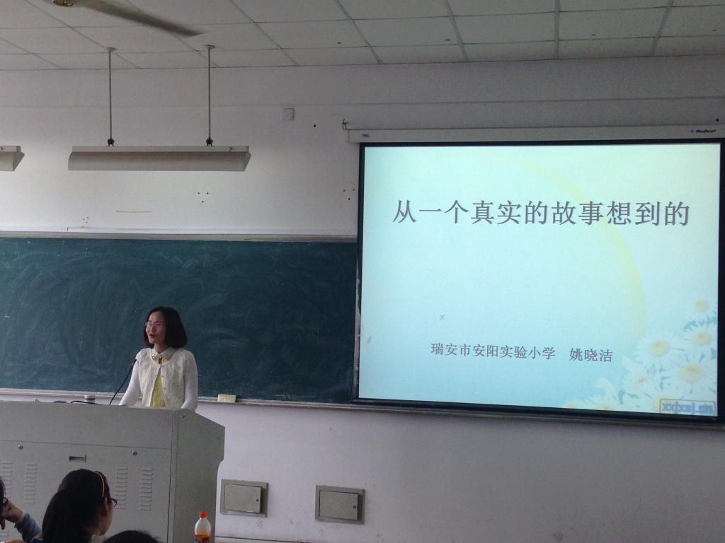 2014年4月16日下午两点,williamhill官网系于北校3号教育楼302教室开展了名师大讲堂活动。此次讲座的主题为“小学数学教学—备课、听课、评课”,由周鹤新老师主持,瑞安安阳实验小学姚晓洁老师担任主讲,12小教全体学生参加。