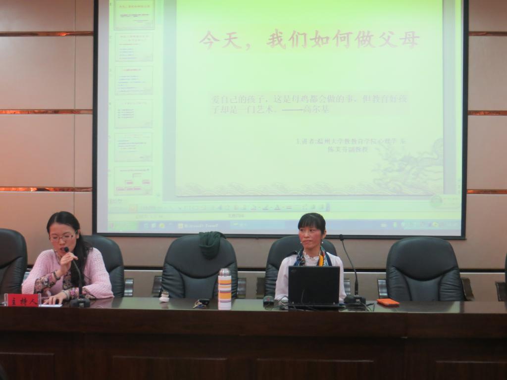 4月4日下午,应苍南县实验二小邀请,我院心理学系陈美芬老师前往苍南为家长们开展讲座。本次讲座的主题为“今天,我们如何当父母”,受到了家长们的热烈欢迎,整个会场座无虚席。陈美芬老师先是指出:妈妈高度是孩子成长的起点,爸爸的高度是孩子成长的方向,阐述了孩子成长中父母齐心协力的重要性。然后,直击困扰家长们的焦点问题“我的孩子去哪儿?”,并从心理学层面,剖析了家长们陷入了普遍集体性焦虑的成因,接着结合一个个鲜活的案例向家长们提出“做一个思考型的父母、学习型的父母、倾听型的父母、阳光型的父母”等具体建议。期间,陈美芬让家长们分享自己教育子女过程中的诸多感悟,引起了家长们强烈的共鸣,会场上不时爆发出热烈的掌声。