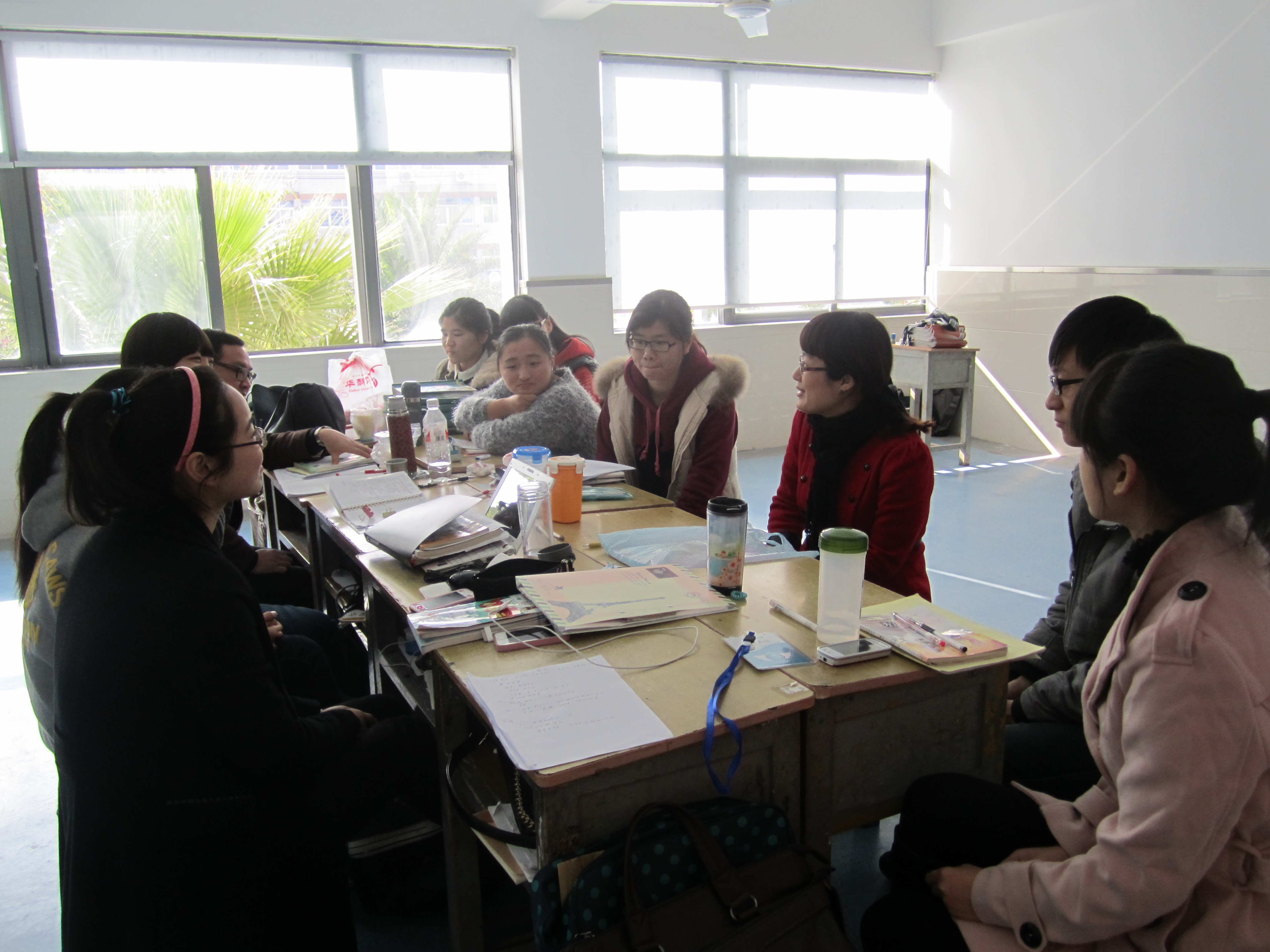 在实习生的办公室里,孙老师、胡老师以及实习点的带队老师周鹤新老师和实习生们一起,进行了亲切会谈,孙院长首先关心了我们在瓯海实验小学实习是否顺利,并逐一向我们询问了实习班级以及具体的实习情况,然后深切地嘱咐我们要珍惜这次实习的机会,无论是在教学方面,还是在班级管理方面,要尽可能多的向指导老师请教学习,不断地对自己的教学以及管理工作进行反思,同时也要对指导老师表示感激之情,最后还不忘鼓励我们,实习虽然只剩下一个星期,但同学们一定要以最好的心态以及最努力的行动坚持到底,给此次的实习画上完美的句号。同行的胡老师也对我们表示了关切之情并对我们给予了厚望。此外,还有这次我们的实习点带队老师周老师也在教学指导上给了我们很大的启发和帮助,让我们在实战教学中受益颇多。老师们的到来,不仅给予了我们深切的关怀和殷切的期望,更是给我们注入了一剂强心剂,增加了我们实习的动力。座谈会在轻松的气氛中圆满结束。