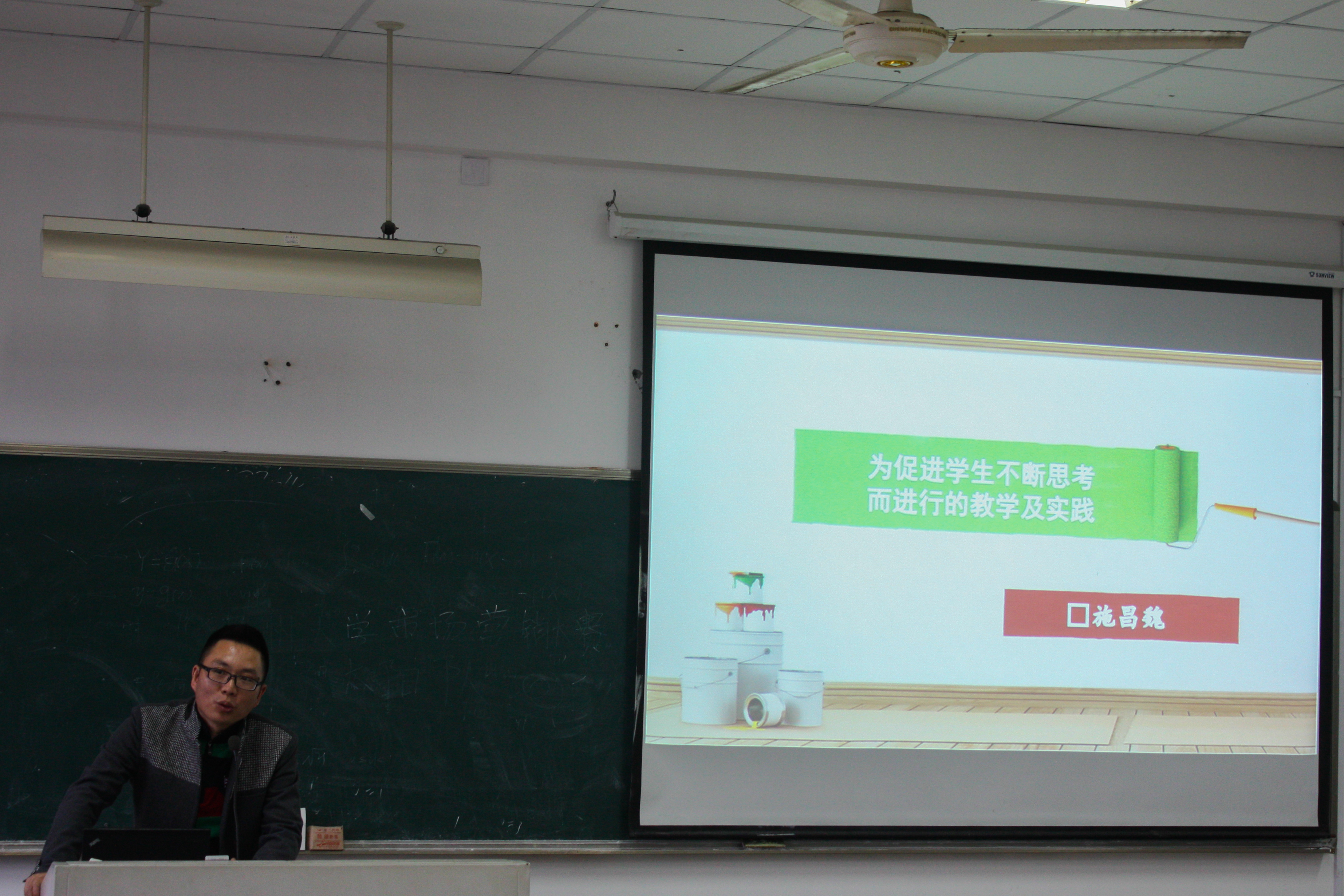 为了帮助学生进一步了解教育的对象和职责,促进学生的自我思考和反思,williamhill官网在2013年11月27日下午1:30—3:30于北3-401开展了名师大讲堂活动。本次讲座由施昌魏老师担任主讲人,主题为“为促进学生不断思考而进行的教学及实践”。本次活动由小教系主办,小教工作室承办,小教系教师谭莉老师主持,12级小教本全体学生参与本次讲座。