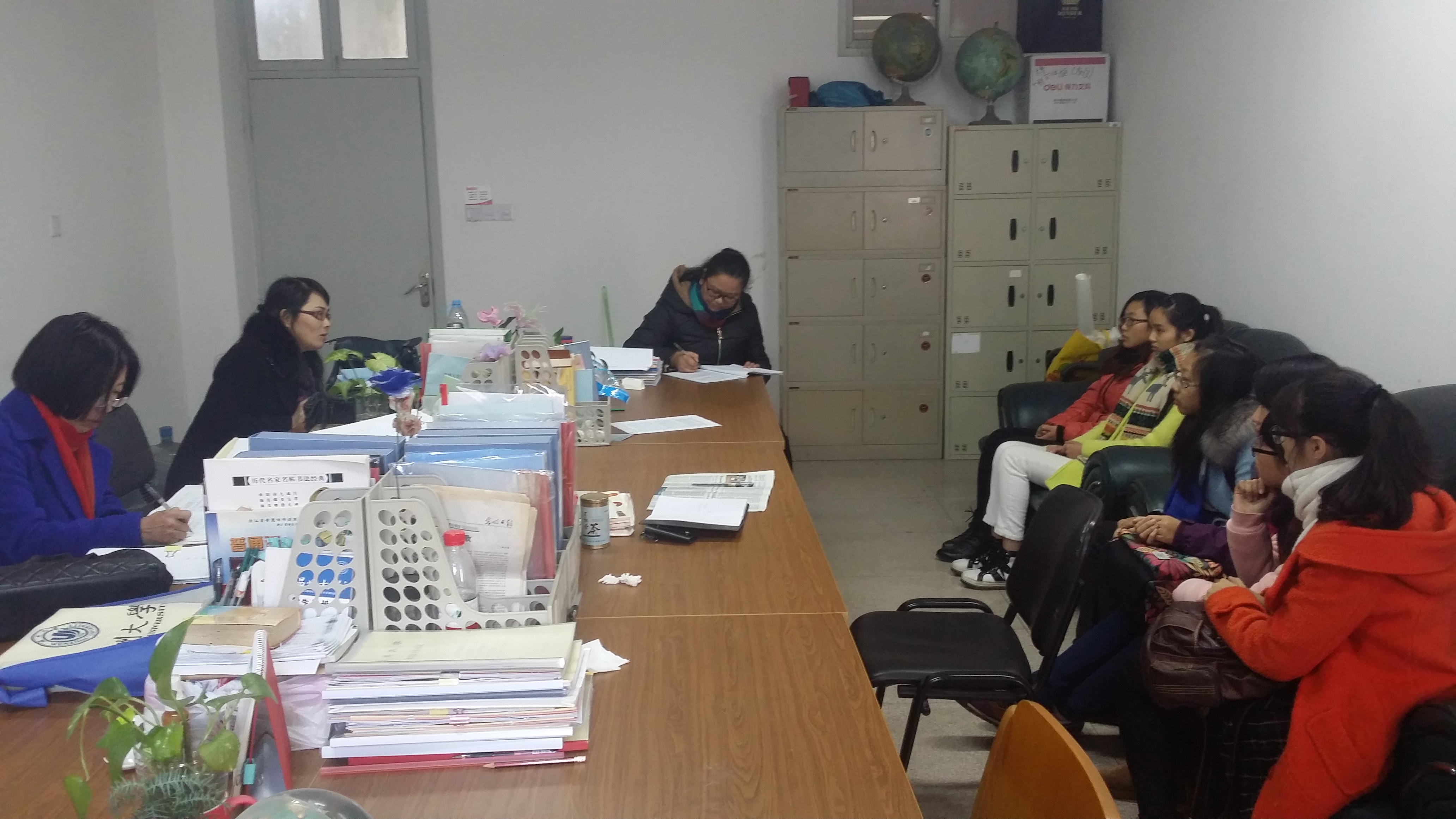 整个谈话氛围轻松融洽,城南校区队长叶聪聪首先谈到了见习学校的师资,以及在见习过程中与指导老师的沟通和13级同学见习过程中遇到的一些困难。接下来的几位同学相继发言,每个小学在师资,见习学校重视程度等情况都不相同,对于这些情况各位老师都进行了详细的分析,胡孙贵等老师给大家分享了很多宝贵的经验,刘海霞老师更是将各队长提的一些建议详细的记录了下来。