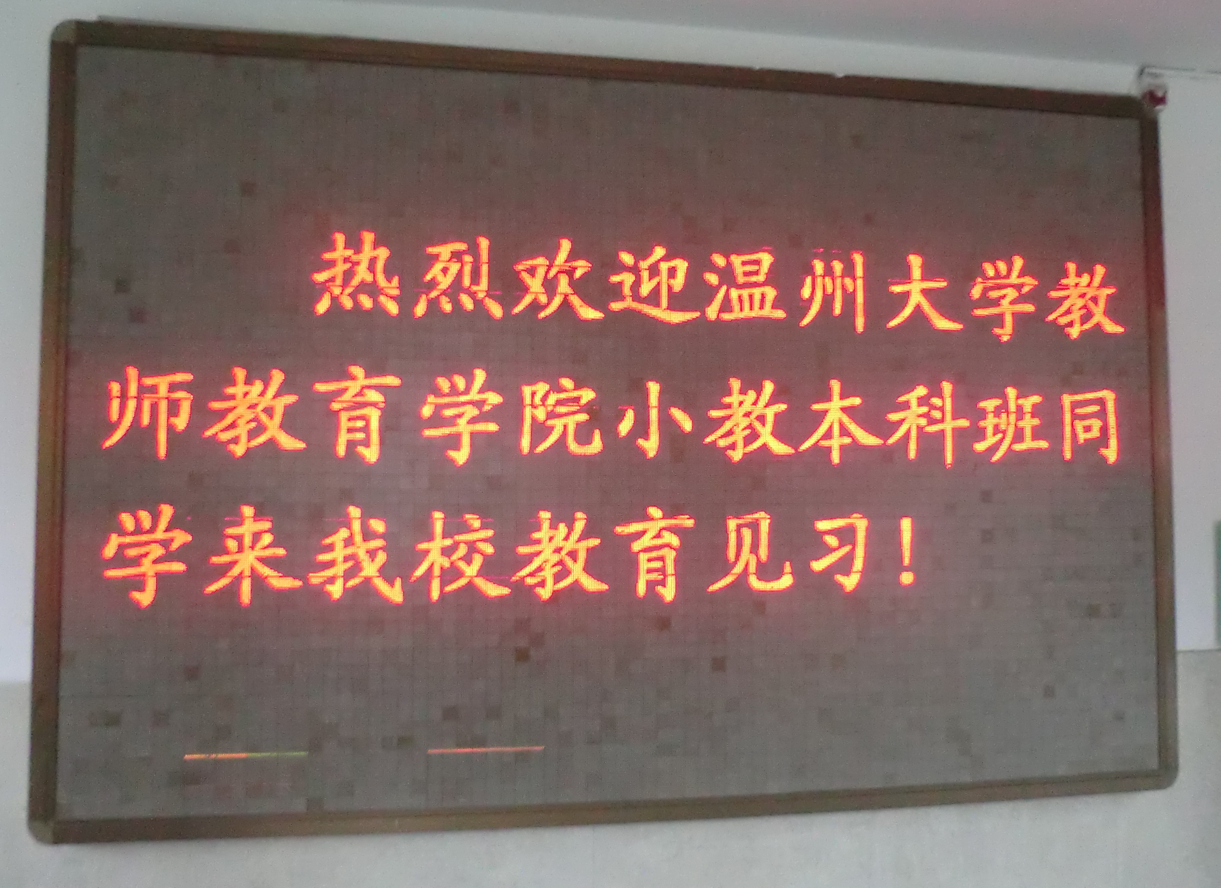 2012年11月12日,为了提高教师素养,明确学习方向,10小教本的三个班学生在胡瑞美老师的带领下走进了温州建设小学(大南校区)。本次见习进点由建设小学大南校区校长蒋樨老师亲自接待,并在其主持下在建设小学的五楼会议室召开了一个简短而又重要的会议。