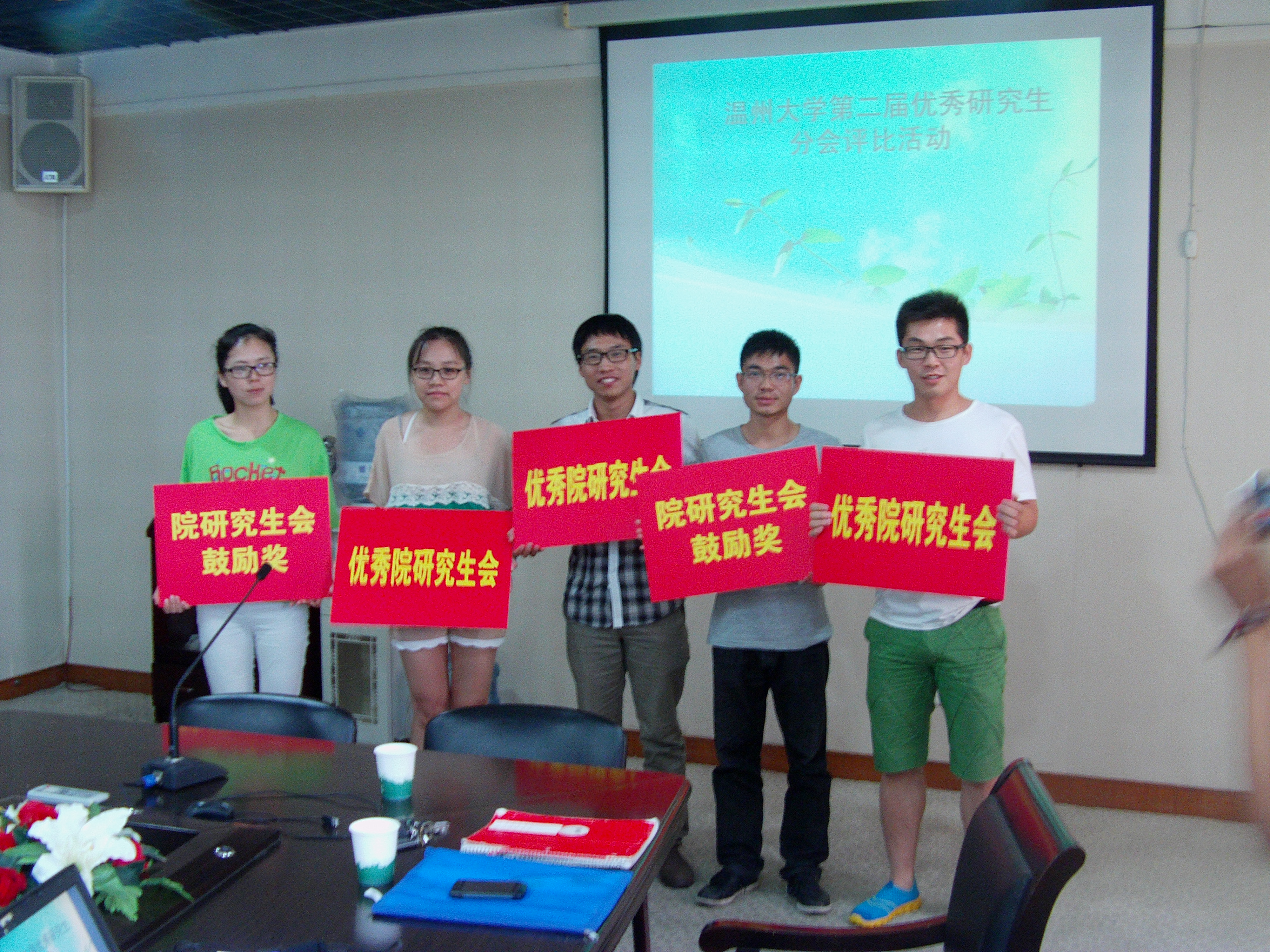 6月20日下午2:00在南校行政楼419室,我校研究生会举办2012-2013年度William威廉“优秀研究生分会”评选活动,出席活动的主要有研究生部李祖祥老师、占正云老师,各学院研究生会主席以及PPT宣讲人员。