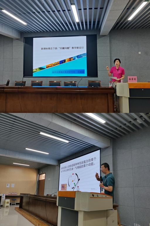 此次活动邀请了温州市鹿城区教育研究院资深教研员杜丽丽老师和周晓林老师开展主题分享讲座。杜老师聚焦“新课标理念下‘关键问题’教学新设计”,从分析教材、分析学情、制定教学目标、确定教学重难点等角度讲解“关键问题”教学设计。周老师聚焦“整体视角下的小学数学教学思考与实践”,强调要研究数学课堂教学中的关键问题,厘清关键问题的含义并明确关键问题的价值,讨论确定关键问题的途径和方法,开展基于关键问题的学习活动设计。在互动环节,受训教师和大学生积极参与,分享经验、提出困惑、深度讨论,碰撞出众多思想火花。主题研讨总结阶段,徐速教授引导名师工作站的优秀大学生们继续思考和交流,并强调,作为未来教师,需要树立卓越教师的发展目标,了解教育实践中的“应为”和“难为”,抓住各种机会与在职教师共同探讨,并积累底气进行分享。