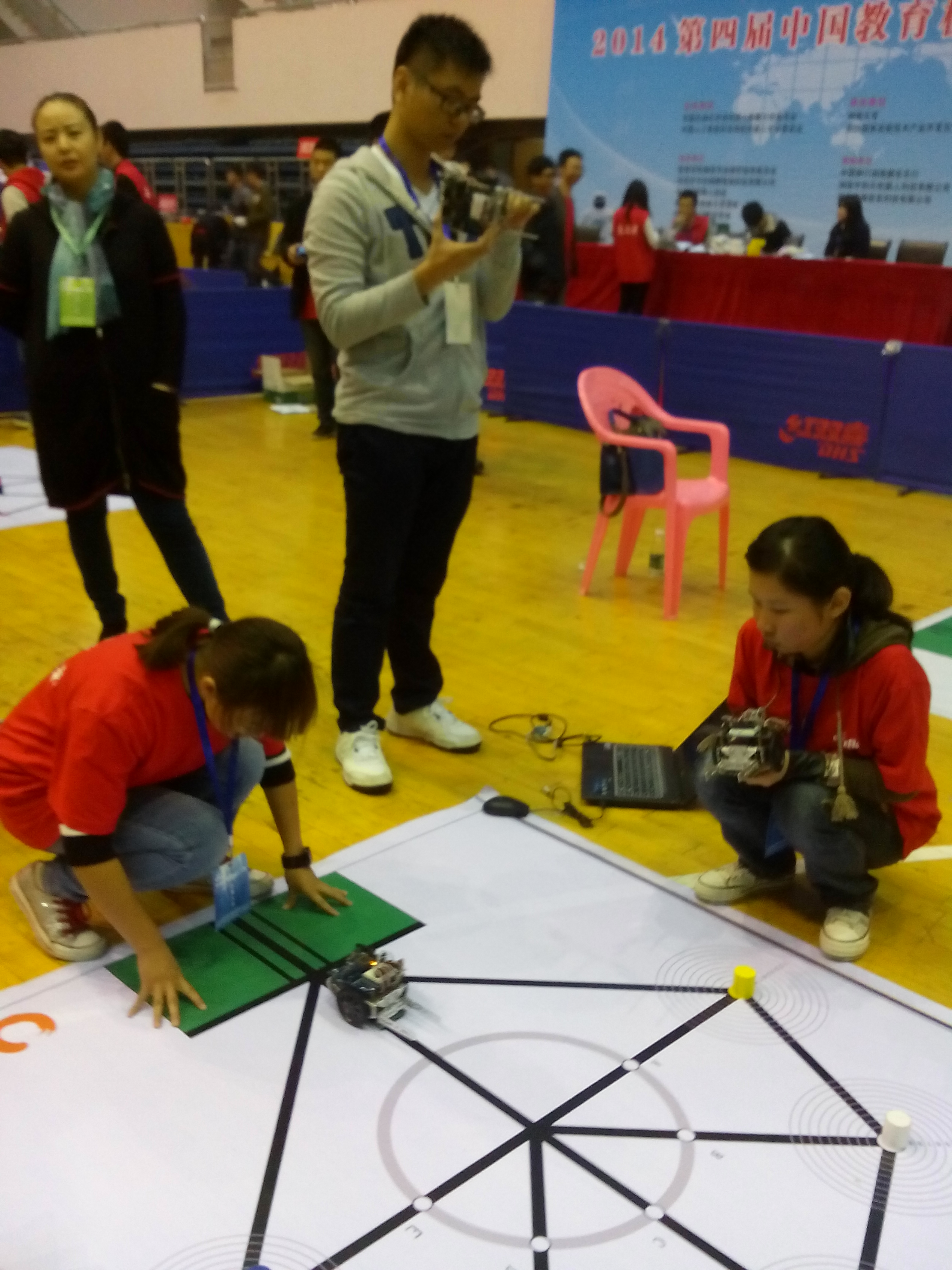 2014年11月1-2日,由中国自动化学会机器人竞赛工作委员会、中国人工智能学会主办第四届中国教育机器人大赛在湖南大学体育馆隆重举行,来自全国50多所大中院校的150多支队伍参赛。比赛的两天时间里,进行机器人创意设计、群机器人协作、机器人擂台、机器人智能搬运、机器人搬运码垛、机器人灭火、机器人游中国(高铁)等比赛。由我院小学教育系谢翔、吴瑞荧、李乐佳组成、张新老师指导的williamhill官网队经过奋力拼搏,取得“第四届中国教育机器人大赛”机器人智能搬运比赛(C51组)二等奖的佳绩。