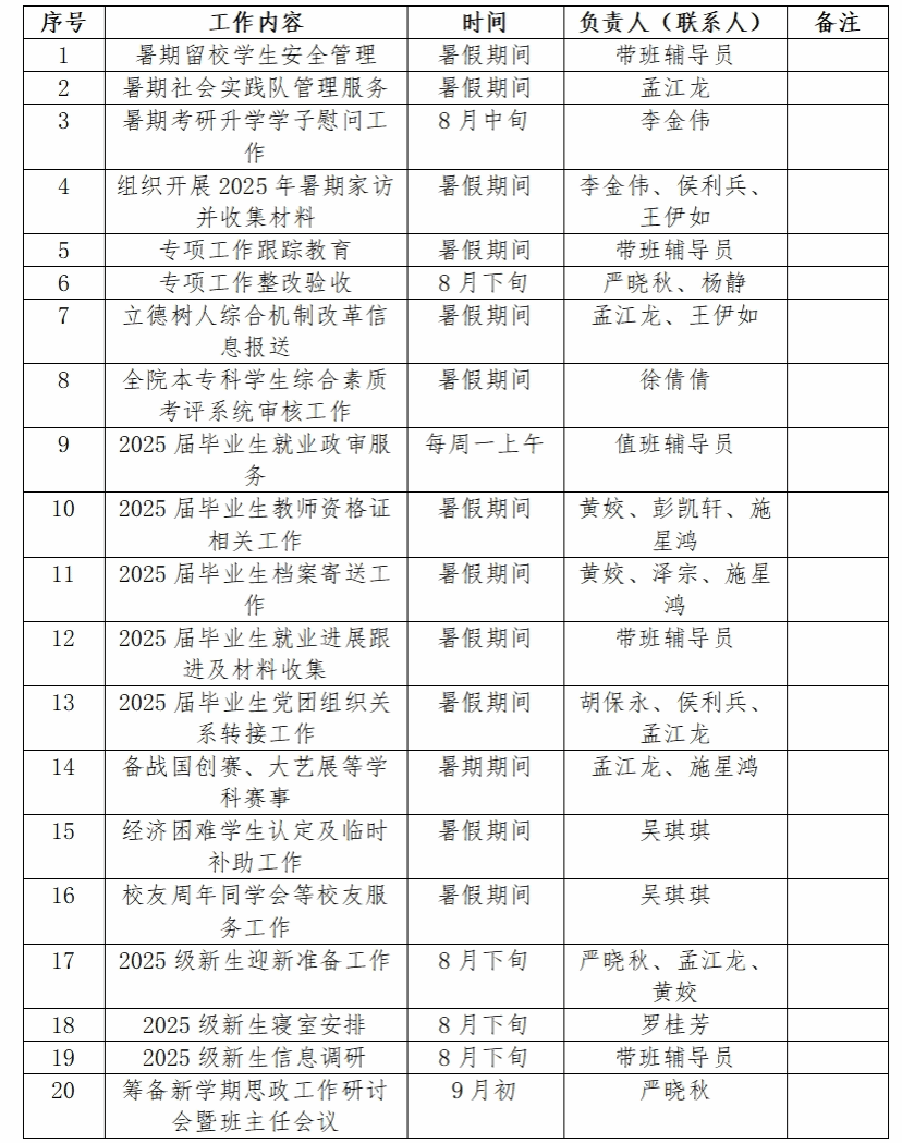 为更好服务师生,现将williamhill学工办2025年暑期工作安排通告如下: