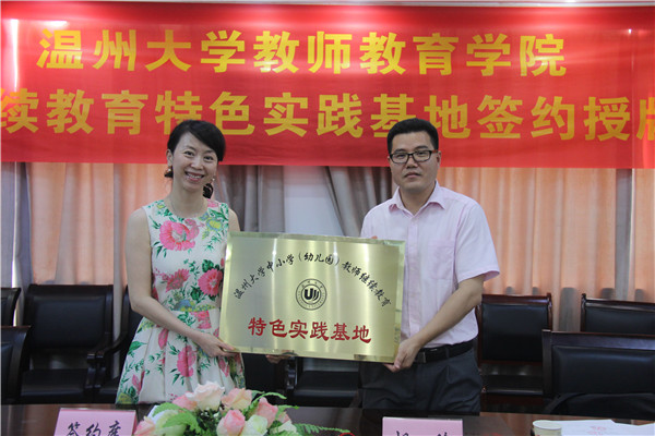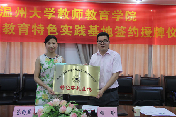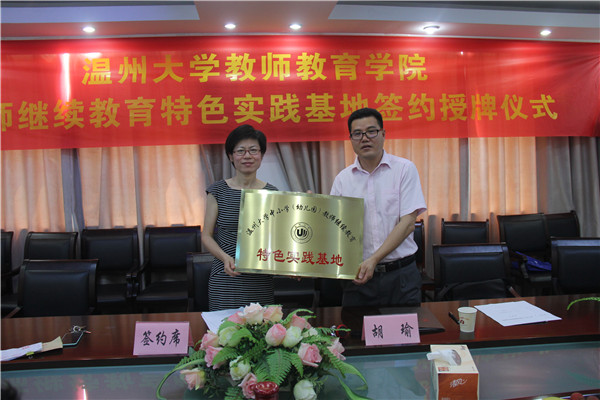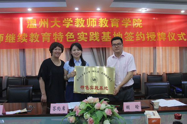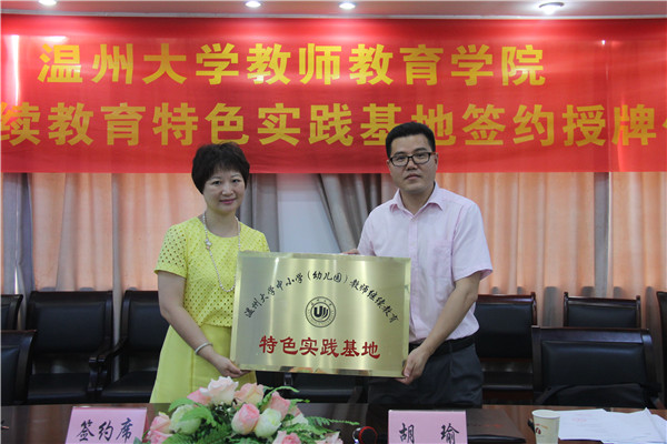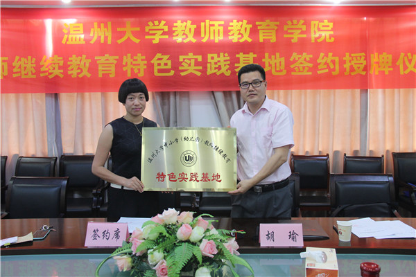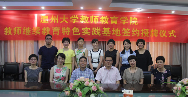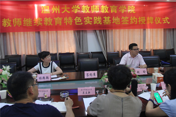 2015年6月30日上午,William威廉中小学教师继续教育特色实践基地签约授牌仪式在William威廉学院路校区举行。来自温州市基础教育界10位项目负责人,代表各自所在的中小学及幼儿园参加了本次仪式,williamhill官网副院长胡瑜作为学院代表出席仪式,仪式由williamhill官网继续教育科科长林鹣鹣老师主持。