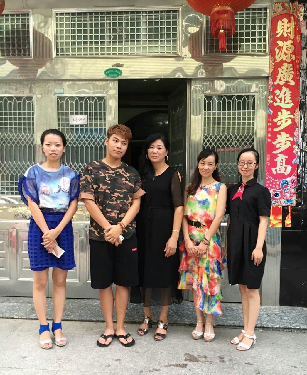 彭小明副院长、陈旭微老师和金晓丹老师与受访家庭合影