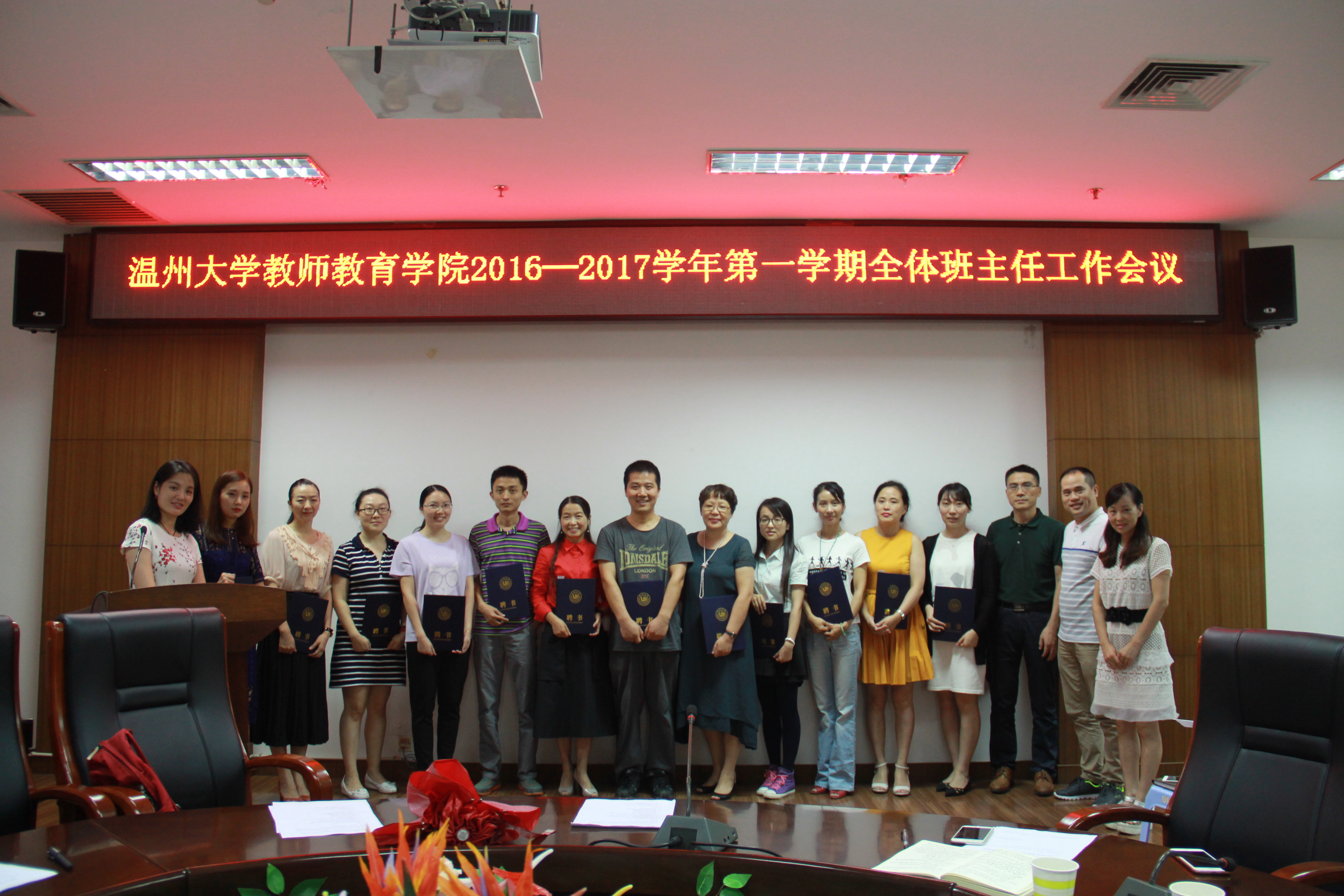 会议伊始,杨立淮书记宣读了所有班主任名单,明确了每班的班主任任职情况。在新老师进行自我介绍之后,杨立淮书记为新生班主任颁发证书并合影留念。