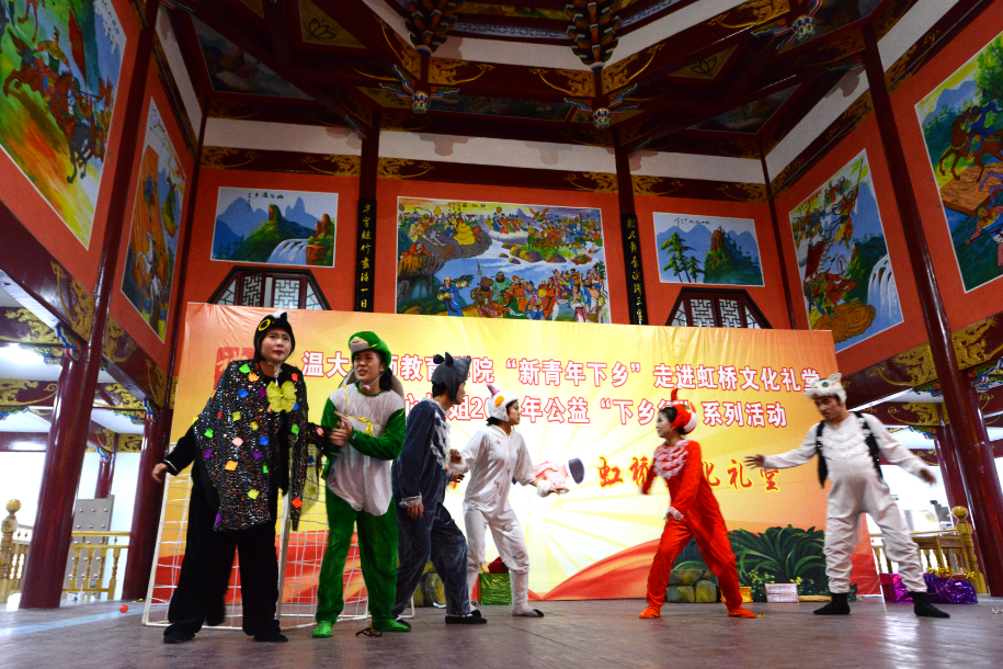 虹桥镇宣传委员吕海疆提到,虹桥镇各村如今最需求的是妇女和孩子的教育,这次通过新青年下乡活动,尤其是12个文化礼堂与温大williamhill官网结对,能借助大学生的力量,为村的教育提供了很好的机会和资源。前塘村文化礼堂负责人连岩龙高兴地说,“温大williamhill官网‘新青年下乡’到农村,为农村群众送来文化教育服务,丰富了村民文化生活,老百姓非常欢迎和高兴。”