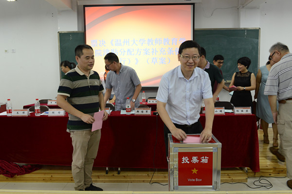 郑信军就《学院“十三五”发展规划》的起草和《学院津贴分配方案补充条例(试行)》(草案)分别做了说明。针对《“十三五”发展规划》(草案),他重点强调了制定的背景和我院目前存在的薄弱之处,解释了几易其稿后形成的规划目标、主要任务、保障措施等,指出“十三五”期间对我院的挑战和重要意义。针对《津贴分配方案补充条例》(草案),他说明了制定的背景、依据以及制定过程中所秉持的原则,并介绍了十易其稿的制定过程,还解释了条例中的一些条文。他还指出了这一《条例》今天提交大会投票表决的重大意义。