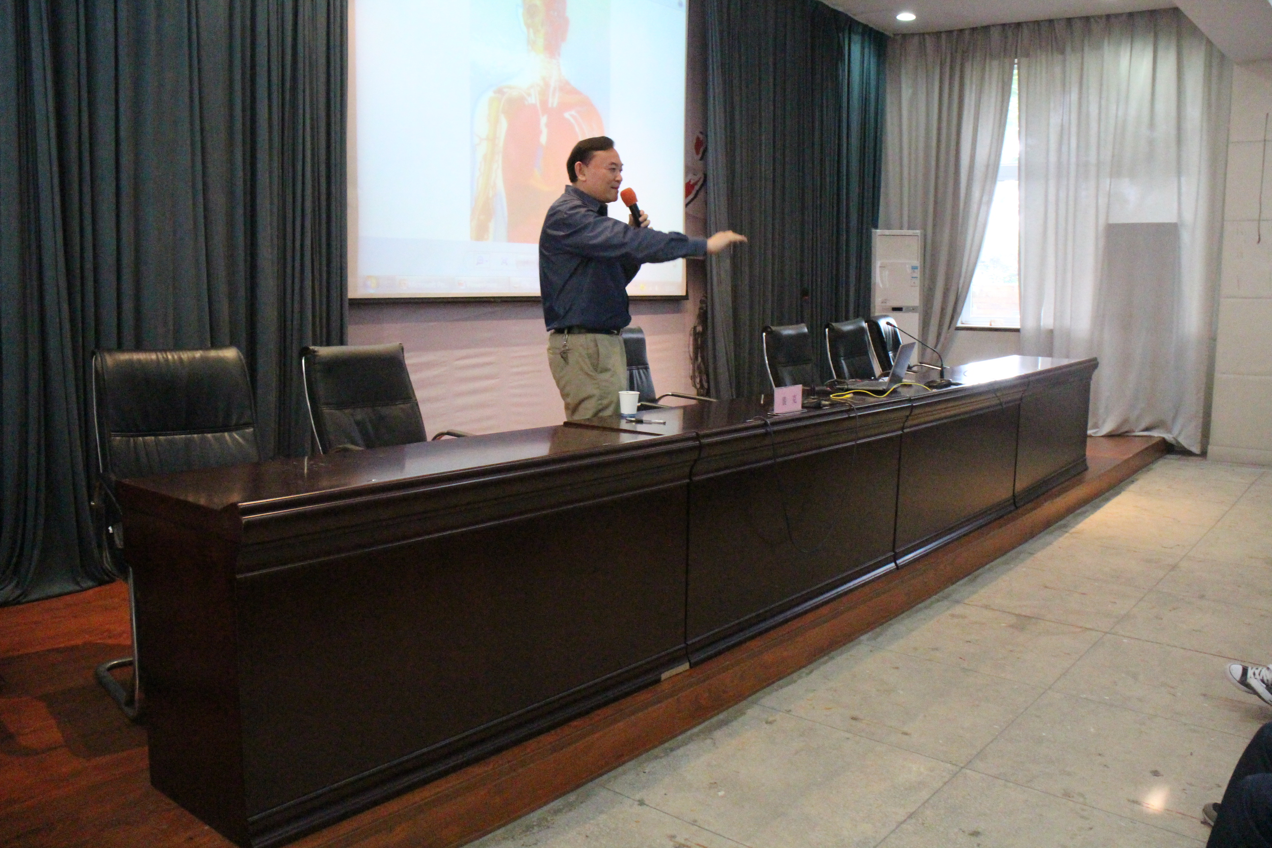 裴克教授在声乐基础传授中。展示一张人体骨骼图,通过讲解膈膜的位置,身体歌唱时肌肉和内脏器官的运动和状态,如何正确地呼吸等等,句句直切要害,并把人比作音叉、橡皮球等物,生动有效地纠正了学生模糊不清的发声观念。歌剧演唱专业的教授还现场演唱《在那遥远的地方》,不借助任何扩音设备,声音回荡在整个会场,每个角落都能听到他深厚清亮的歌声。