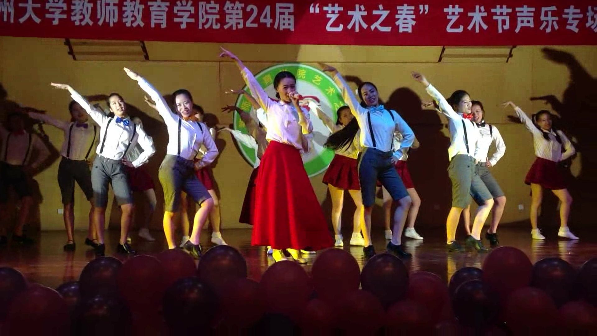 不知不觉到了晚上,是期待已久的声乐专场。华丽的服饰、精致的妆容,浩大的排场、流转的灯光……无一不在昭示着阵容的强大,无一不在吸引着新生渴盼三年后温大的融入。开场的《赶圩归来啊哩哩》极大程度地惊艳了新生们!原来歌者可以和舞者配合得那么好!歌舞相融,伴舞的人用曼妙的舞姿和别出心裁的队形赋予了歌曲新的含义,为歌曲蒙上了一层绯丽的色彩;歌者配合舞者的队形,将漂亮的歌喉发挥得淋漓尽致,让人闻之陶醉。后面的节目也是一个个精彩,歌者自信优雅的模样夺人眼球,余音绕梁,久久不绝。
