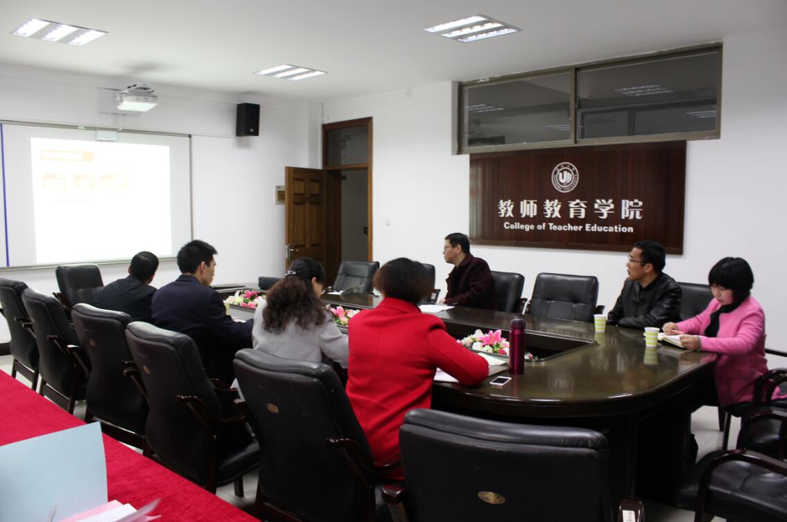 3月16日上午,宁波大学williamhill官网陈柏华副院长带领基础教育系主任张宝歌、副主任韩晋及梁明月博士等一行四人来我院交流。学院领导郑信军、彭小明、胡瑜、小教系主任李梁及教学科和实验中心相关教师接待了客人。