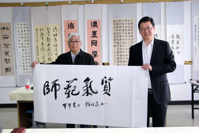 顾先生一行先后参观了蒙特梭利教学实验室、奥尔夫音乐教学法实验室、感觉统合实验室、未来教室、书法实验室,对实验中心先进的设备和教育理念表示赞许。在书法实验室,面对认真书写的学生,顾先生欣然写下“师范气质”的题词,笔力依然深厚遒劲,并对我院“博、爱、雅、艺”的师范气质给予充分肯定,他强调:“要把爱献给教育,把爱献给学生。”在场师生深受启发,瞬间向起了热烈的掌声……顾先生的指导和题词对实验中心来说无疑是一种肯定,更是鞭策和激励。(摄影:胡铸鑫)