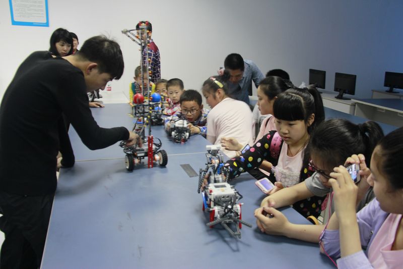 在机器人实验室,孩子们亲身体验操纵智能机器人夹取、放置物体过程。通过对智能机器人的体验,让孩子们感受到了机器人的乐趣,也增加了今后探究科学世界的兴趣和动力。