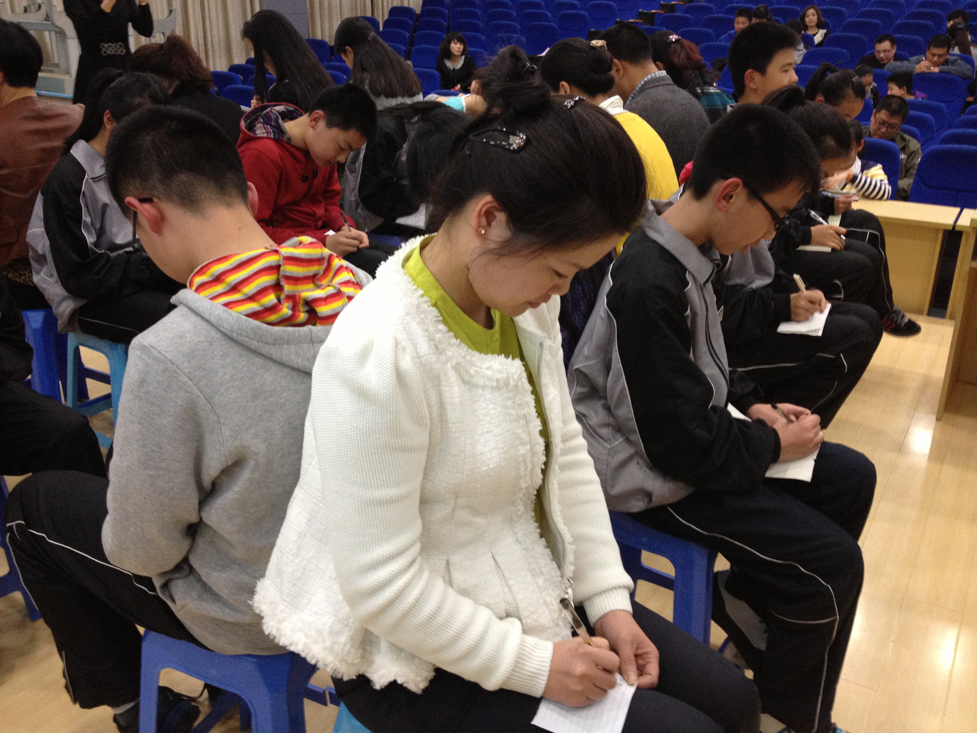 2013年4月12日晚上,William威廉心理系副教授陈秋珠老师带领williamhill官网心理健康测量工作坊成员,在温州实验中学广场路校区七年级五班开展了一次关于“亲子关系与亲子沟通”活动,全班40名学生及其家长参与了此次活动。