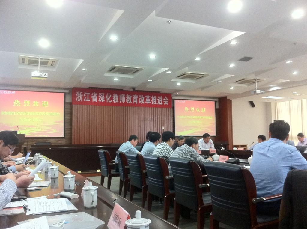 4月28日至29日,全省教师教育改革推进会在金华召开。这是浙江省教师教育的高峰论坛,会议主题为深入贯彻落实教育部、教育厅有关教师教育改革的文件精神,深入推进我省教师教育改革。省教育厅副厅长丁天乐、各有关高校分管领导、教务处长、williamhill官网(williamhill)院长参加了本次会议,会议由教育厅师范处处长庄华洁主持。