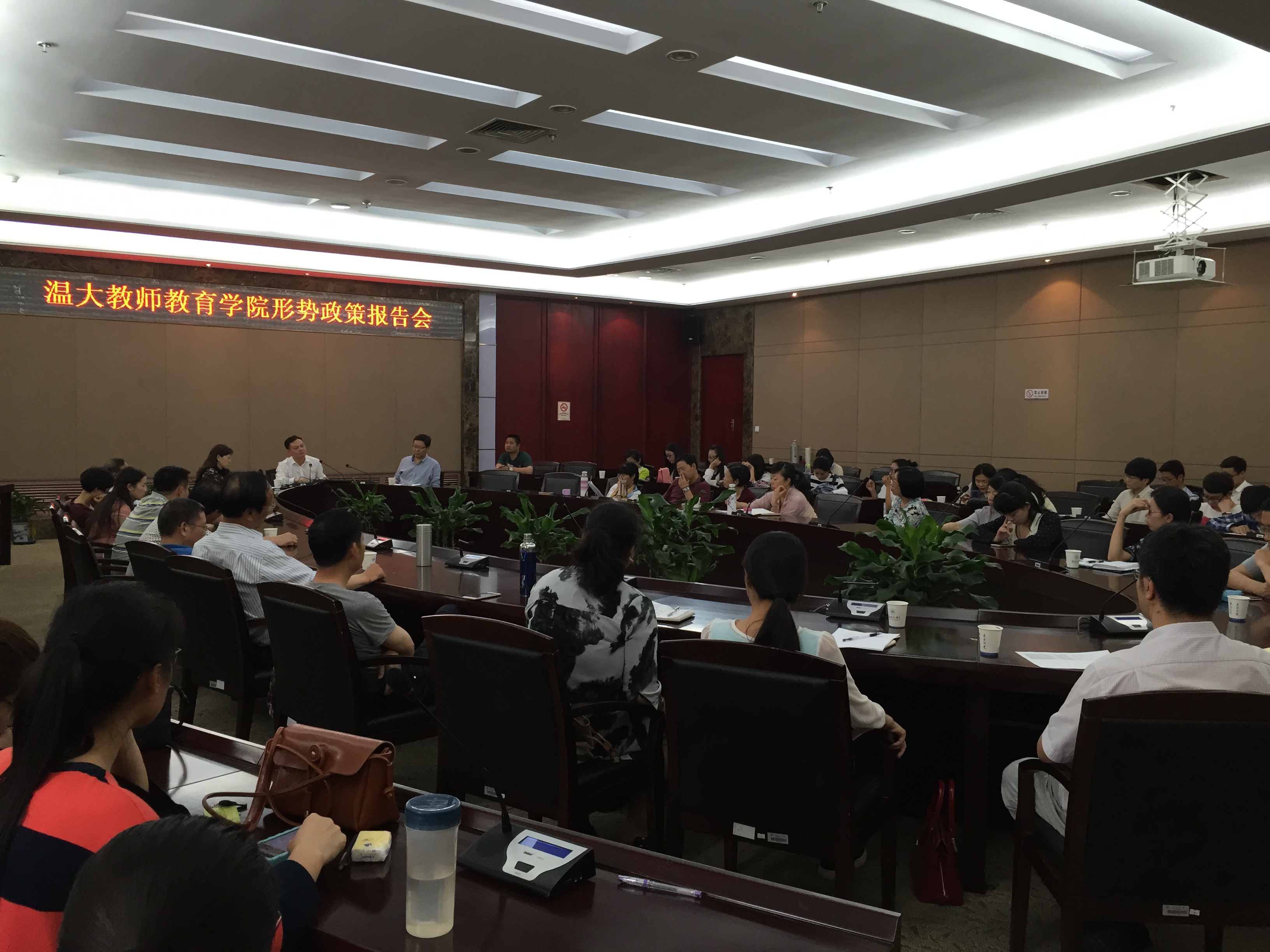为全面贯彻落实校党委“学党章党规、学系列讲话,做合格党员”学习教育动员会议精神,5月25日下午,学院党总支在南校区岩松堂白鹿厅召开“两学一做”学习教育动员会暨形势政策报告会,全体教师党员和研究生党员近60人参加会议。会议由学院院长兼党总支副书记郑信军同志主持。