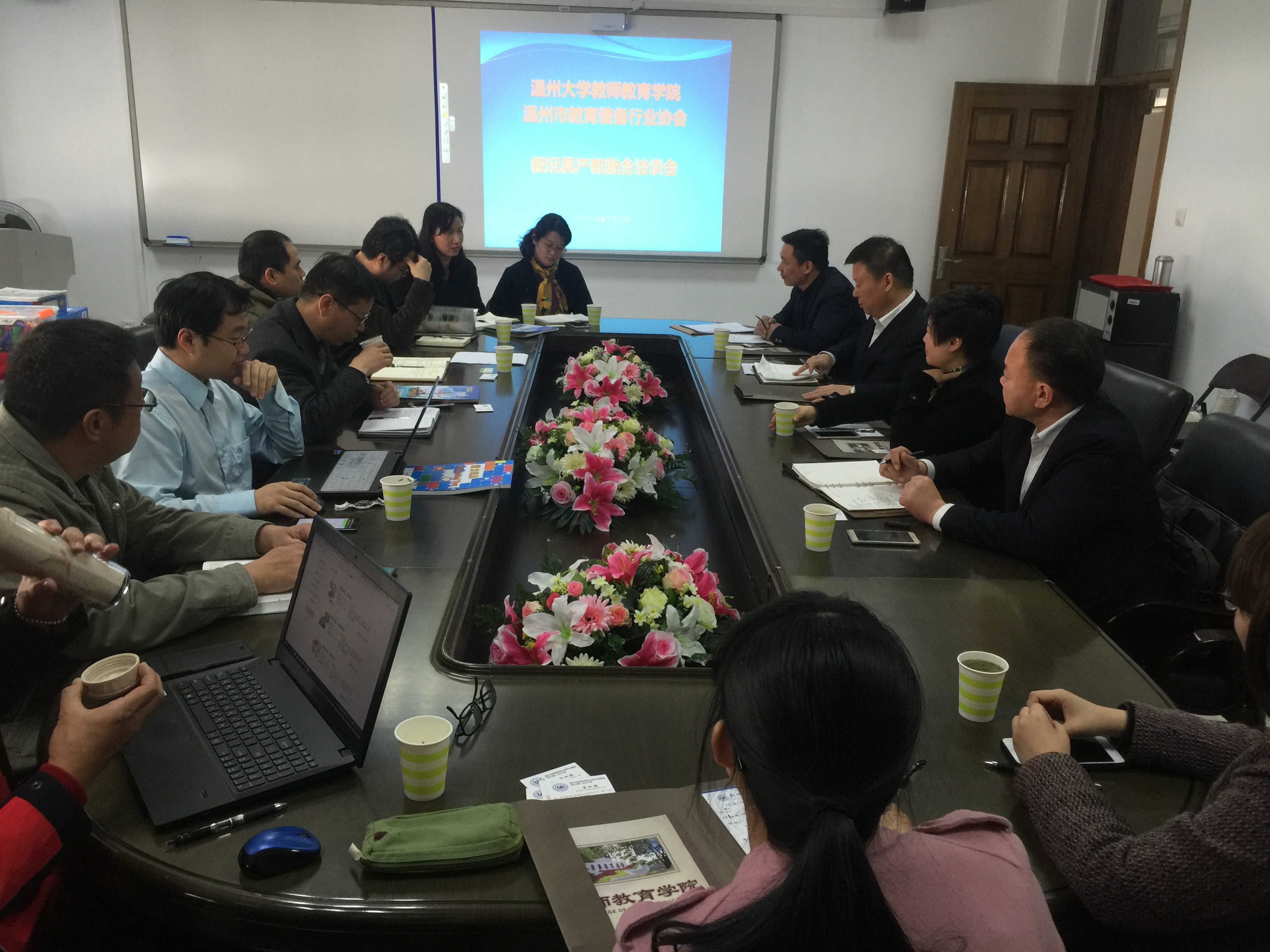 2017年3月3日,温州市教育装备行业协会由陈继权会长率队到我院开展对接洽谈,我院领导郑信军、杨立淮出席。会上,协会副秘书长叶益生介绍协会基本情况,陈继权会长对温州教玩具产业的发展历程做了详细介绍,对温州教玩具产业及其与高校结盟发展的前景做了热情洋溢的战略性展望,他尤其看好我院在学前教育、应用心理学、教育技术学等学科的人才资源,希望在教玩具人才培养、教玩具设计及其教育开发、平台建设与智慧教育等方面开展深入对接合作。浙江亚龙教育装备股份有限公司、浙江潜力玩具有限公司、浙江巧巧教育科技有限公司等企业负责人也就相关企业发展现状与需求做了介绍。我院学前教育系、心理学系、教育技术系等多位教师参加了洽谈会并充分发表了对教玩具设计理念、教育应用开发、教玩具发展趋势等方面的意见和想法,新近加盟我院的三位台湾博士也表达了专业意见与浓厚的兴趣。郑信军院长指出,十三五期间以教玩具为突破口实现产教融合对于促进我院发展的意义毋庸置疑,而在有关教玩具设计开发的人的要素、功能性要素、审美要素、技术要素、市场要素和安全要素等方面,我院专业学科力量与企业可以实现优势互补,协同发展。杨立淮书记也指出,当前需要通过组织队伍、找准切口、重点突破,使相关工作能够真正落地。会上,学院与几家主力企业达成后续工作意向,即逐个深入企业调研对接并开展相应的具体合作。(撰文:陈宥辛)