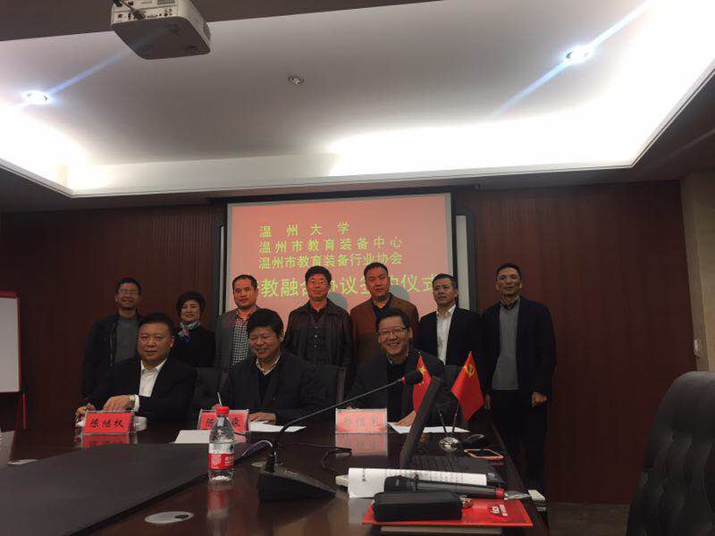 融合各学科、专业力量,结合区域经济社会与教育发展的需求,实现协同育人与协同创新,是williamhill官网“十三五”发展规划之“协育”计划与“融域”计划的基本思路。针对温州(永嘉)作为全国教玩具之都与教玩具产销基地的区域特色与我院专业、学科的契合性,学院早在2016年下半年就开展了相关调研、咨询与洽谈工作。2016年11月29日,郑信军院长与杨立淮书记代表学院赴永嘉育才控股集团参加了包括多家主力企业在内的多方研讨会,并与温州市教育装备中心、温州市教育装备行业协会签署了三方战略合作协议。协议涉及共建教育教学实践基地、共同研发教玩具产品、共同开发教玩具产品的教育应用、共同开展学术与教学交流活动等多项内容。