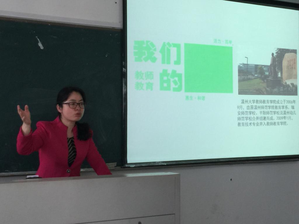 随后陈秀雅老师从创建优良学风、争做优秀学子和凝练师范气质、提升文化氛围两方面对同学们学习期间请假制度、学风建设、争优评比及特色活动做了要求和介绍,并与全体同学分享了“哟……哟……教师教育最优秀”的口号。