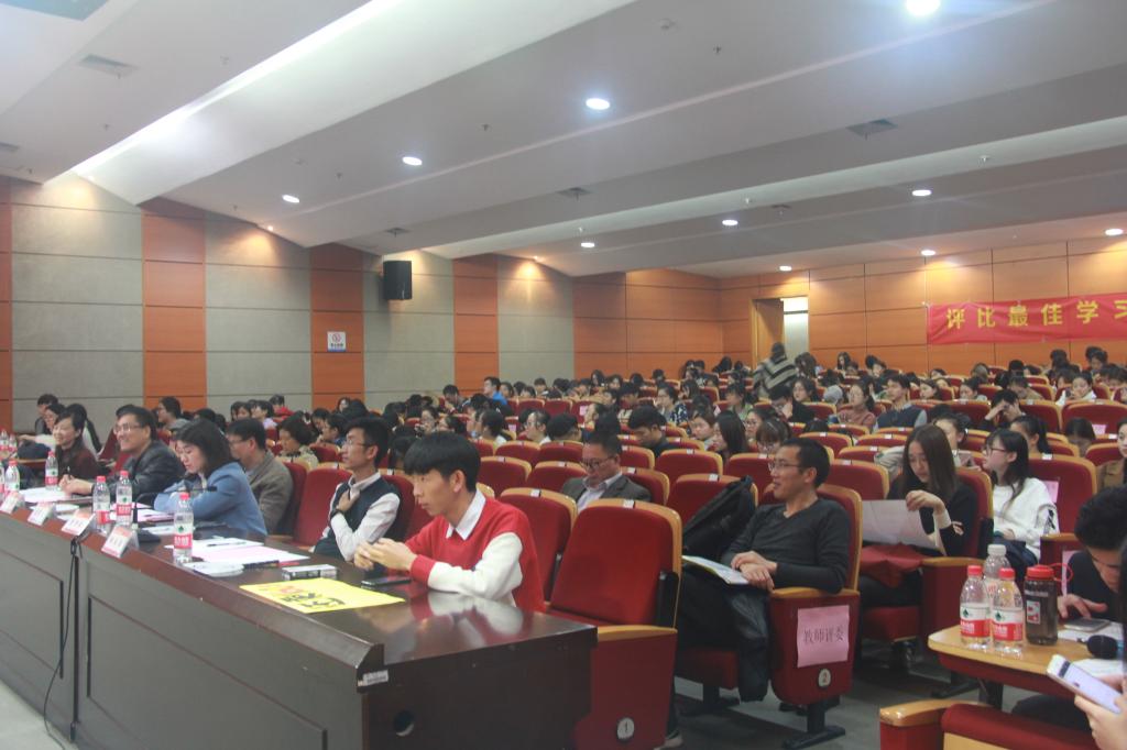 首先杨丽君副书记致辞,她指出,williamhill官网秉承学校师范教育的优良传统,创新教师教育理念特色,把握师范人才的培养和发展的规律,以师范气质为核心的旗帜鲜明地提出了“培育气质,追求卓越”人才培养理念,并且在这种理念的指导下形成了学院非常优良的教风、学风、院风,也涌现出了一个个十分团结奋进,努力好学的班集体,也涌现出了一批又一批有信念,有纪律,有品行,有作为的优秀学子。她希望今晚所有选手们都有最精彩的表现,也希望所有在场的其他同学尤其是新生小伙伴们能够充分的吸收我们身边的这些优秀榜样的洪荒之力,为自己,为班级制定努力和进步的目标,让优良的学风在我们学院能够长盛不衰,能创建出学院和学校一道道更加美好的风景。