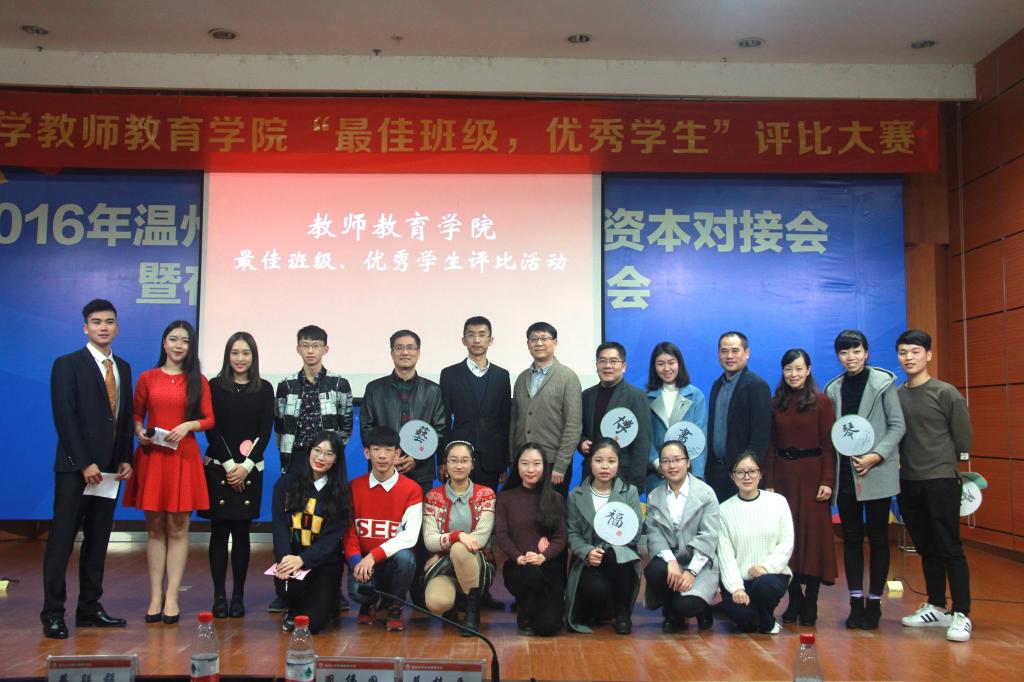 为响应学院的优秀学风建设,2016年12月21日18时整,williamhill官网在南校雁山厅举行了最佳班级、优秀学生评比活动。温州彩虹堂艺术学校董事长董衍滔、William威廉学生处处长蔡联群、就业处处长周伟国、团委书记屠霁霞、教务处副处长蔡桂平、williamhill官网党总支书记杨立淮,党总支副书记杨丽君,以及教师评委出席本次活动。各班级代表也到场加油助威。