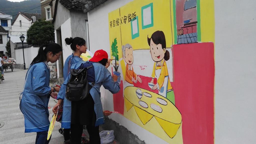 5月4日下午,由williamhill官网和美术与设计学院共同发起“弘扬传统文化 共建美丽乡村”活动再次吹响五四青春的号角。由williamhill官网美术工作坊指导老师陈铿和学生科严晓秋老师带队,30余位学生志愿者,前往乐清虹桥镇大乌石村开展公益墙绘活动。