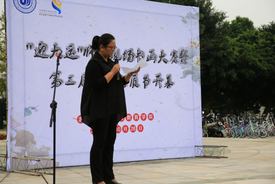 严晓秋老师指出成为具备“博、爱、雅、艺”师范气质的未来教师一直是我院学子的追求目标和奋斗方向,而一年一度的师范气质节为师范气质学生的培育,优秀师范文化的创建,优良学风建设的深化,校园文化品位的提升搭建了有效的平台。团委学生会主席陈蔡璠作为学生代表发言,她回顾了往年两届师范气质节的主要内容和所获得的一些成绩,并向同学们介绍了本届师范气质节主要内容,言语中无不吐露出与同学们一起开展活动的喜悦之情。教师代表刘海霞生动地讲述了有关书画比赛的历史故事:永和九年,书圣王羲之与谢安等41位名士雅集兰亭,“群贤毕至,少长咸集”、“仰观宇宙之大,俯察品类之盛”临流赋诗,诗文并茂,为我们留下了惊艳千古的行书《兰亭集序》,至今传为佳话,令千年之后的我们不胜仰慕;并以此鼓励更多的当代学生热爱并传承中国传统文化,用心去领悟传统文化的内涵与经典,加深自己的文化素养。杨丽君副书记宣布“迎大运”师生书画大赛暨第三届师范气质节正式开幕,给全场师生带来极大的鼓舞。现场师生热情高涨,每个人的脸上都洋溢着青春活力,并参与到现场的签名活动。