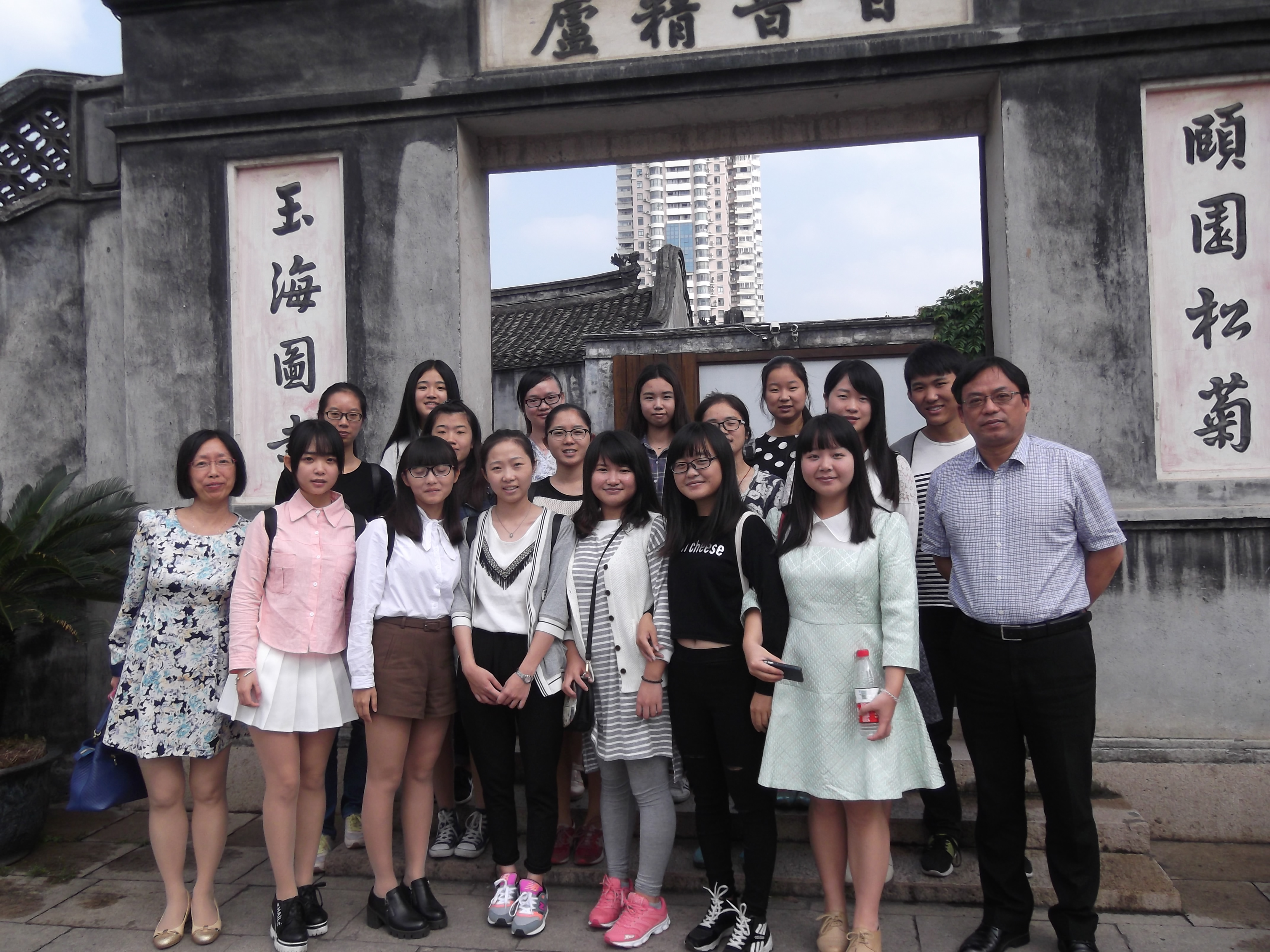 经过玉海楼颐园时,其门联云:“退思补过,时还读书。”李刃主席笑道,今日与你们文化交流切磋,我占了上风,同学们回去该退思补过了。三分谈笑,实则是颇具苦心的教诲。同学们与李刃主席交流文化,深感自己的文化积淀薄弱,功力不足,此次游历之后,应当退思补过。