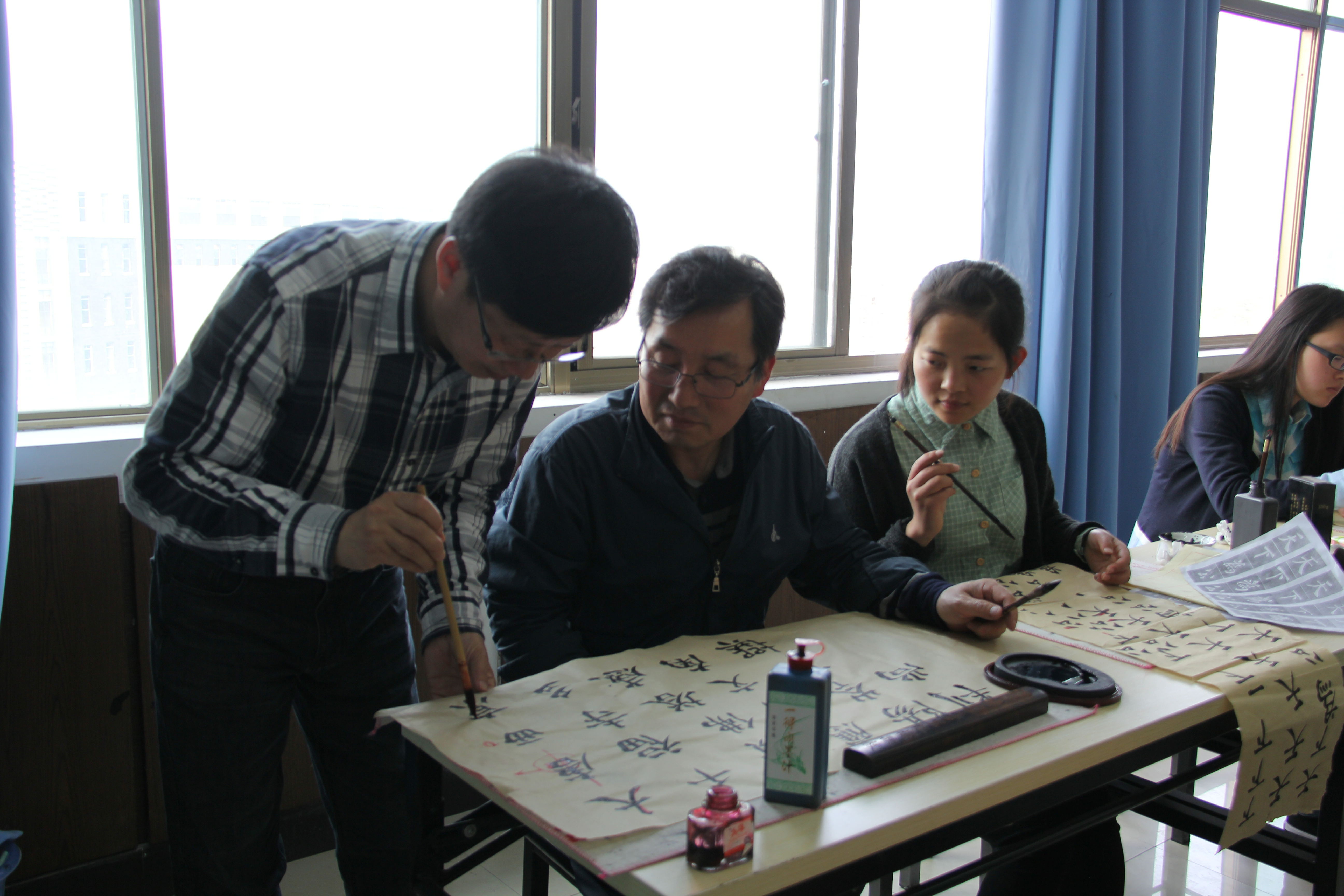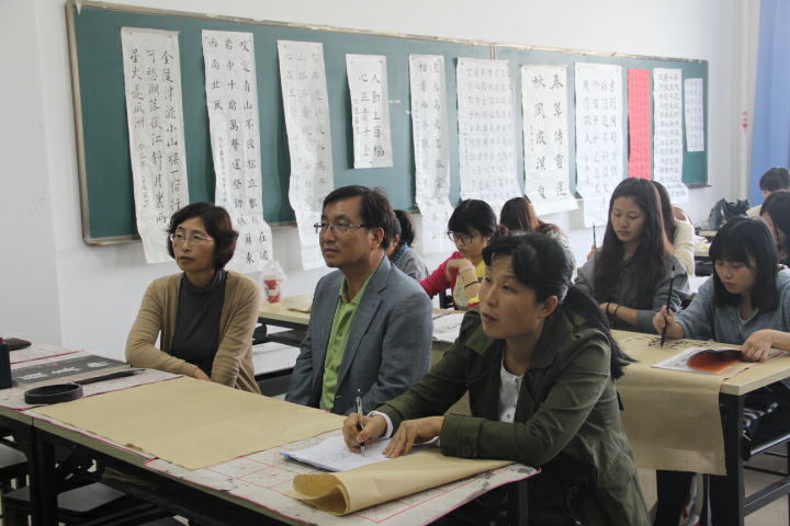 金教授说,在韩国,师范生并没有特别注重对书法的学习。这次访学,他的收获很大,他想回国后也像我们的林可松老师一样,开设一个书法工作坊,为师范生们搭建一个练习书法的有效平台,传播书法文化。最后他祝愿我们每一位同学在书法学习中,修心养性,用笔用心书写自己青春的精彩,书写自己生活的精彩,书写自己人生的精彩!