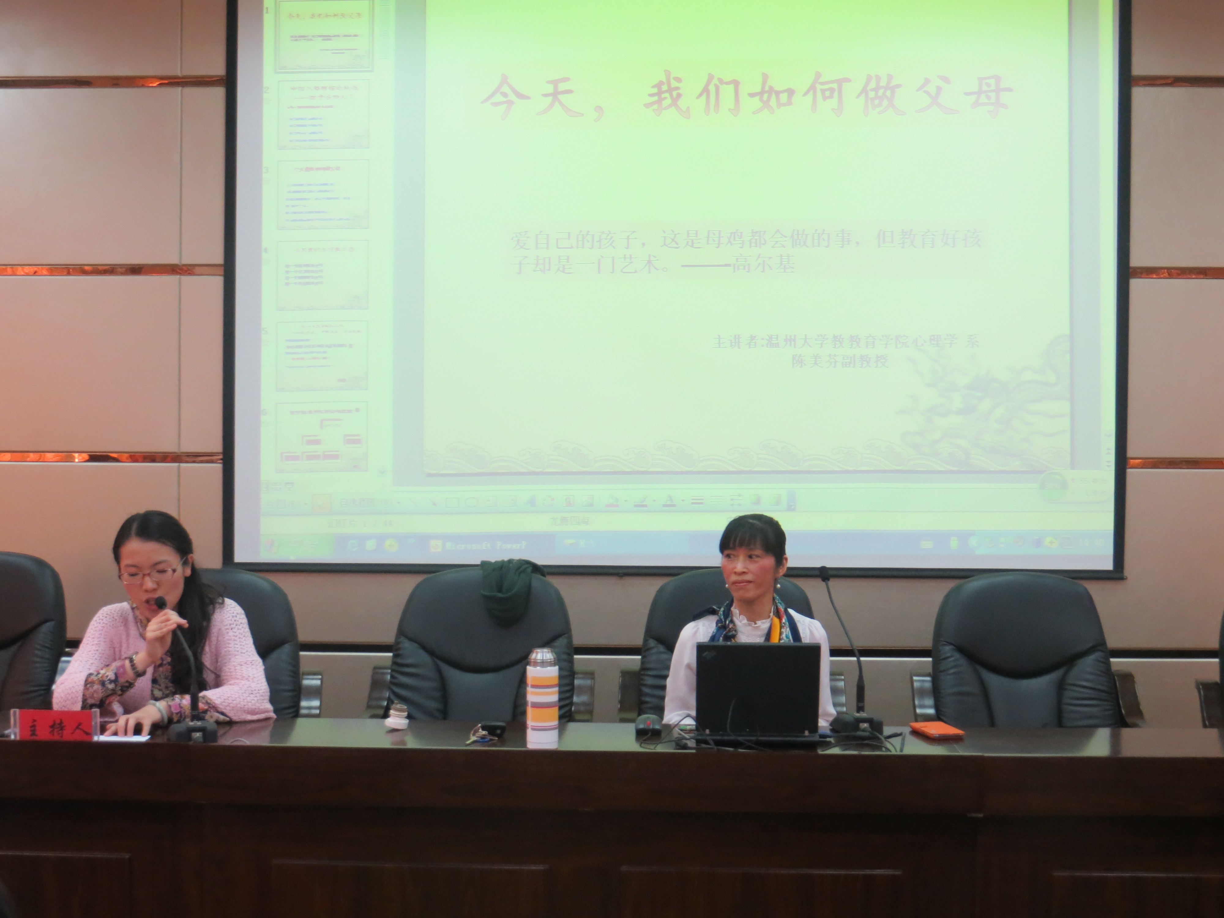4月4日下午,应苍南县实验二小邀请,我院心理学系陈美芬老师前往苍南为家长们开展讲座。本次讲座的主题为“今天,我们如何当父母”,受到了家长们的热烈欢迎,整个会场座无虚席。陈美芬老师先是指出:妈妈高度是孩子成长的起点,爸爸的高度是孩子成长的方向,阐述了孩子成长中父母齐心协力的重要性。然后,直击困扰家长们的焦点问题“我的孩子去哪儿?”,并从心理学层面,剖析了家长们陷入了普遍集体性焦虑的成因,接着结合一个个鲜活的案例向家长们提出“做一个思考型的父母、学习型的父母、倾听型的父母、阳光型的父母”等具体建议。期间,陈美芬让家长们分享自己教育子女过程中的诸多感悟,引起了家长们强烈的共鸣,会场上不时爆发出热烈的掌声。