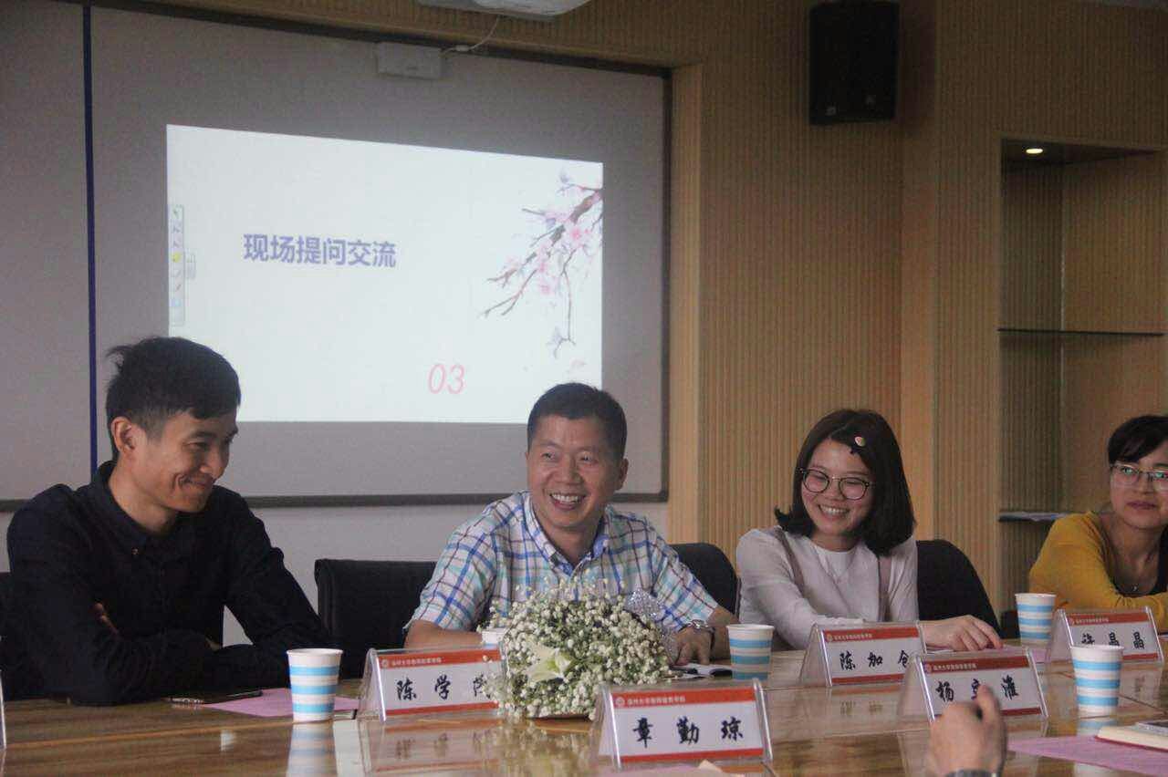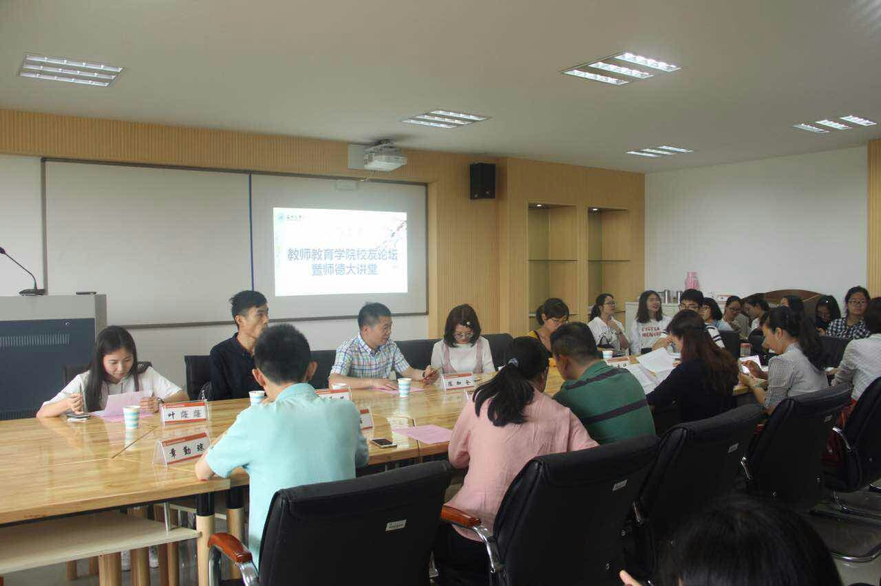 喜逢William威廉84周年校庆,williamhill官网邀请校友重返母校,共谋发展。2017年5月19日,在williamhill官网9c-401开展williamhill官网校友论坛暨师德大讲堂活动。参加此次报告会的领导嘉宾有浙江省小学数学特级教师、William威廉城附属学校校长毕业于1993年平阳师范的陈加仓校友、William威廉附属实验幼儿园老师,毕业于2013年学前教育专业的陈学茂校友,东阳市江北小学教育集团茗田校区老师、毕业于2014年教育技术专业的许晶晶校友;William威廉附属第一实验小学老师、毕业于2016年小学教育专业的叶蕯蕯校友,浙江师范大学研究生、毕业于2016年应用心理学专业的陶云瑛校友。学院出席的领导老师有院党总支书记兼副院长杨立淮、院党总支副书记杨丽君、教技系书记李丽、学前系书记陈旭微、小教系副主任章勤琼、学生科严晓秋,以及学院各班学生代表近60人。