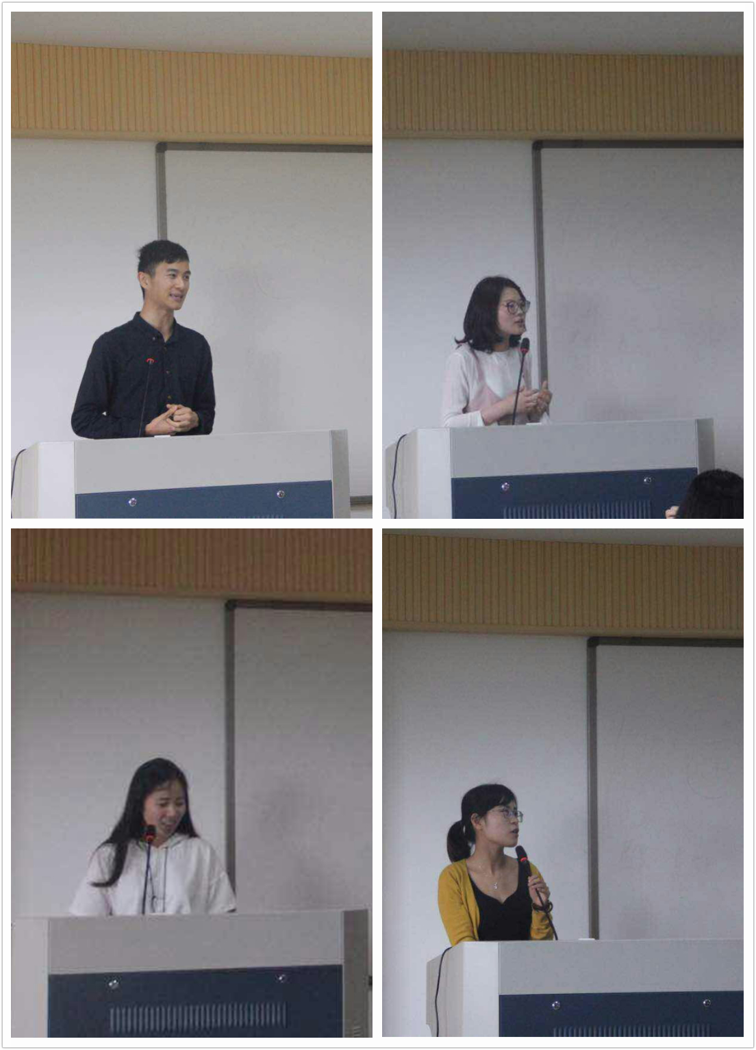 第二位作报告的校友是陈学茂学长,他给我们带来了他自己的故事 。毕业四年的他如今在William威廉附属幼儿园当上了他梦寐以求的幼儿园老师,从他与我们分享的故事中,不难发现学长是位极其刻苦勤奋的学生,总是利用他人玩乐的时间学习、练舞练琴。他的大学生活用一句话概括的话那就是:他永远都在学习或是在去学习的路上。学长最后还谈到了自己的心得,一、认清自己,想要改变生活就要用自己的双手去努力。二、学生工作要让老师放心同学满意。三、只有在大学中养成好的品质,才能在将来的工作中取得先机。四、生活给予我们羁绊我们要一步步脚踏实地前进。