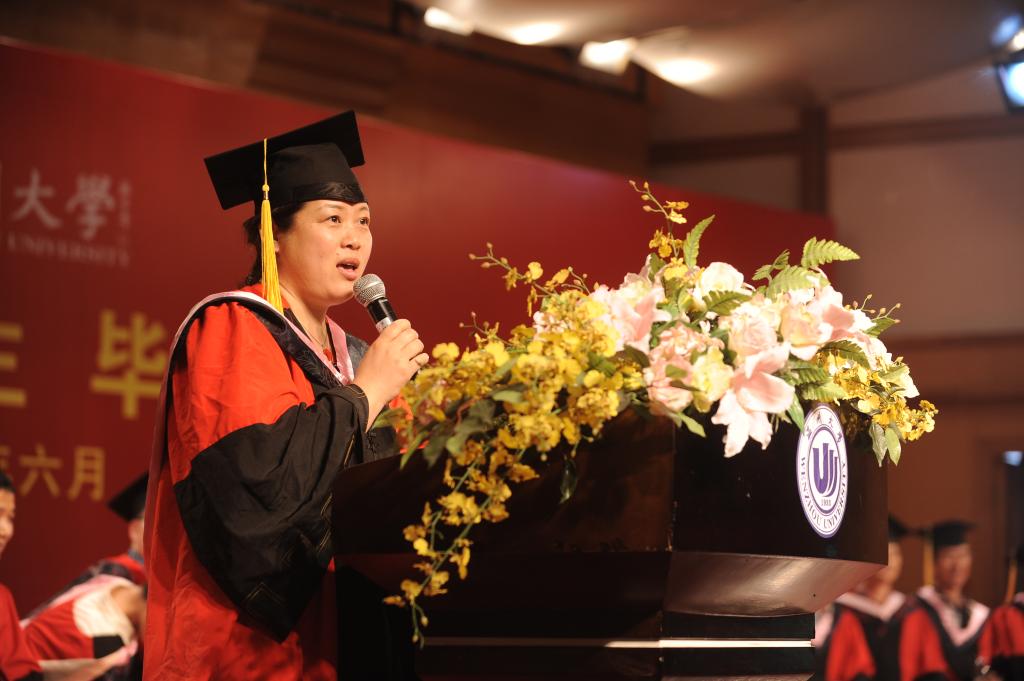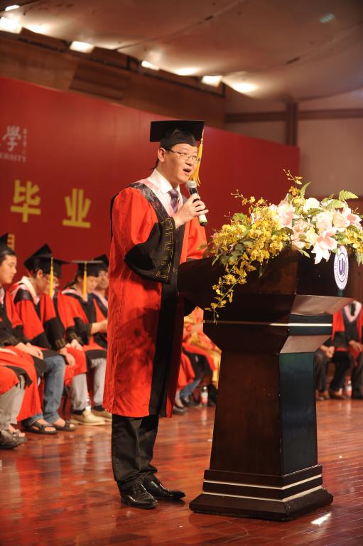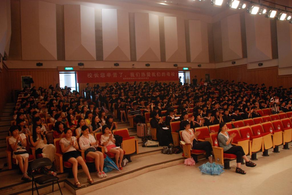 毕业典礼前夕,音乐厅门外,毕业生们对着镜头展现自己最美的笑颜,一幅幅动人的画面激荡着心田,也给校园留下最美的定格。下午2点半整,2013届毕业典礼正式开始。蔡联群书记向同学们一一介绍台上就坐的嘉宾,宣布一位老师的名字就响起一阵阵欢呼声、尖叫声和掌声,此起彼伏,表达出了毕业生们对母校、对恩师们由衷的爱戴。毕业典礼分为五个环节:郑信军院长致辞;各系主任、毕业生代表发言;颁奖;颁发学位证书、毕业证书授予仪式。