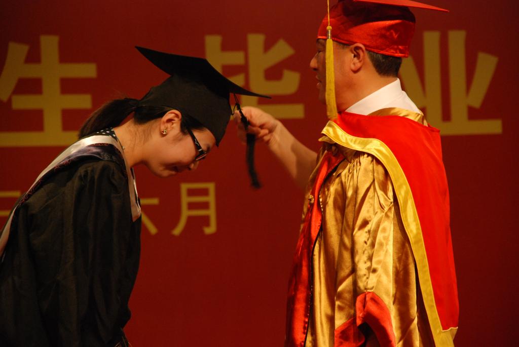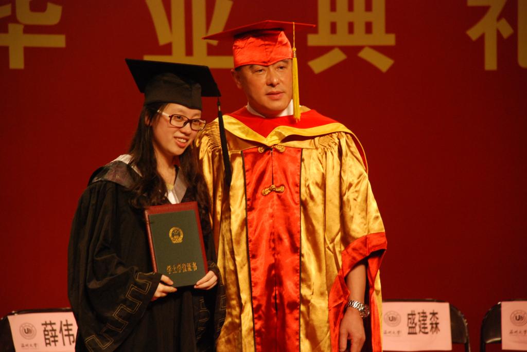 最后,由William威廉副校长薛伟教授亲自为每位毕业生颁发毕业证书及学士学位证书并合影留念使整场毕业典礼达到高潮。薛校长与每位毕业生亲切握手,将毕业生学士帽上的流苏从从右边拨到左边,这就意味着大学阶段学习圆满结束。学位授予仪式是高等院校一项隆重的学术称号授予活动,对学位获得者具有特殊的教育和纪念意义。校长亲自为毕业生正冠拨苏,颁发证书,是我校的优良传统,对每位毕业生来说都是值得铭记的重要时刻。学位证书、毕业证书授予仪式整整持续了2个多小时,毕业生们被薛校长深深感动,他们一起向薛校长致敬,“校长,您辛苦了,我们热爱我们的母校”道出了所有毕业生此时此刻的心声。