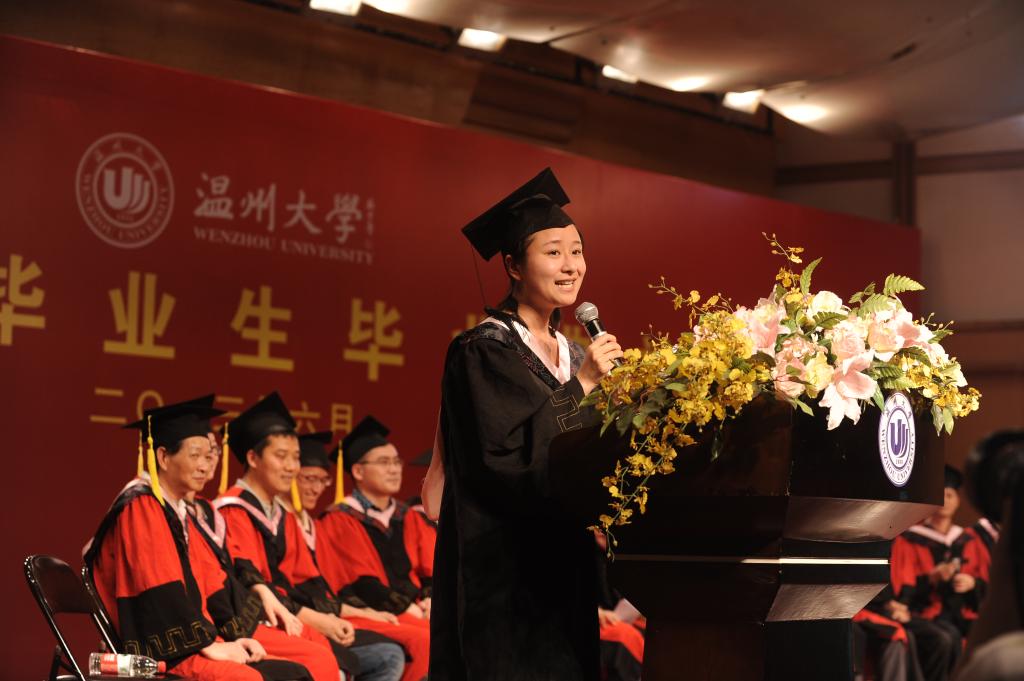 首先,郑信军院长致词。“年年岁岁花相似,岁岁年年人不同”郑院长用那殷切的言辞感谢毕业生为我们留下的美好回忆,并对毕业生们的顺利毕业表示祝贺以及祝愿每位毕业生前程似锦,幸福安乐。他激昂地赞扬学院6名志愿去西北支教的毕业生用青春诉说着他们的人生如夏花般绚丽的举止,肯定了连续三年荣获优良学风班的09学前本,相亲相爱获得“五四红旗团支部”荣誉的09小教中文班,关爱侨乡留守儿童入围中国大学生年度人物的郑洁,还表扬了刻苦学习、锻炼技能的陈占挺和陈学茂等。他说到,这些身边的感动,使我们坚信2013届毕业生必定会将“博、爱、雅、艺”的师范气质在今后的教师岗位上发扬光大,必定会微笑向暖,坚守理想。最后,郑院长带领歌唱由09小教中文改编的《温大北校的日子》,用铿锵的语调愿全体毕业生们用自己独有的方式致青春。接着,各系主任向毕业生们话别。教育系主任折延东老师、心理系主任盛建森老师,教技系主任张新立老师,小教系主任蔡志凌老师、学前系主任曾国老师以各自独特的方式表达了对毕业生的深深祝福。最后,毕业生代表郑洁发言,她以自己亲身的体验愿每位毕业生怀着感恩的心,把所有的不舍化为祝福,开始新的出发。随后,嵇小怡副书记宣读“2013届williamhill官网省级优秀毕业生”、“考研名单”,并进行颁奖。