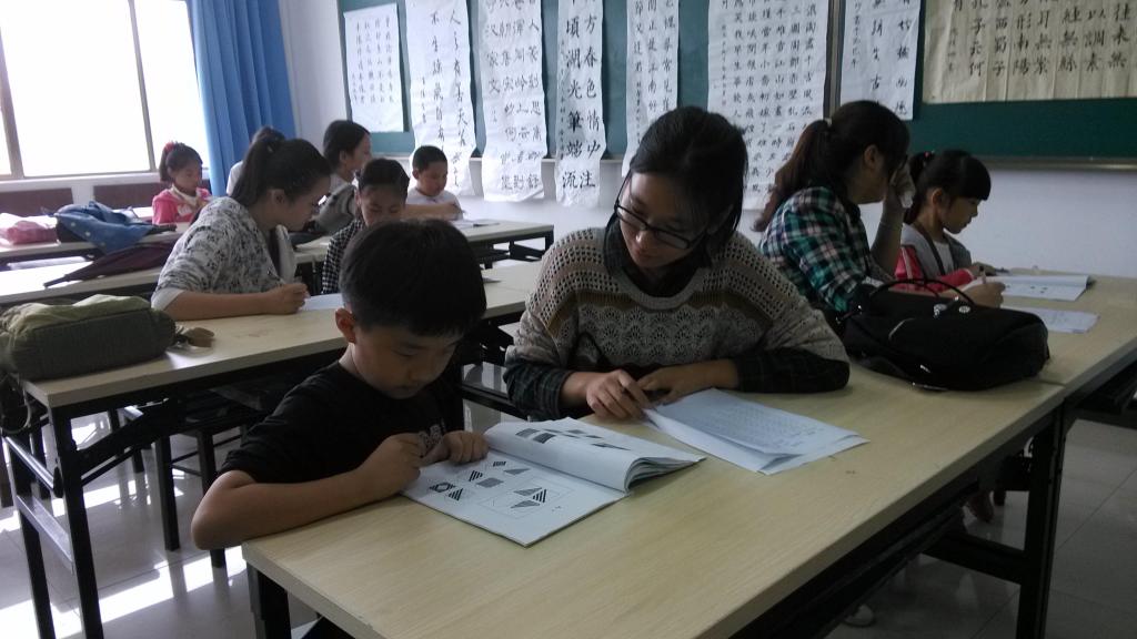 因为时间紧迫,考虑到实际测量的困难,本次活动依然选用瑞文推理测验联合型(CRT),该测验适合对年满5周岁以上的孩子进行逻辑推理能力的测评。心理测量工作坊的成员们通过一对一的个别测量方式,用生动清晰的指导语向小朋友们解释瑞文测验的操作方法,并在一旁观察记录每一位小朋友的做题状态,以便测验结束后对测验分数作出准确而客观的解释。绝大部分小朋友认真地思考每一道题目,仔细做题,顺利完成了整个测验。在施测过程中,家长们也积极与陈老师交流沟通,了解此次测验的目的,并积极配合测试工作。