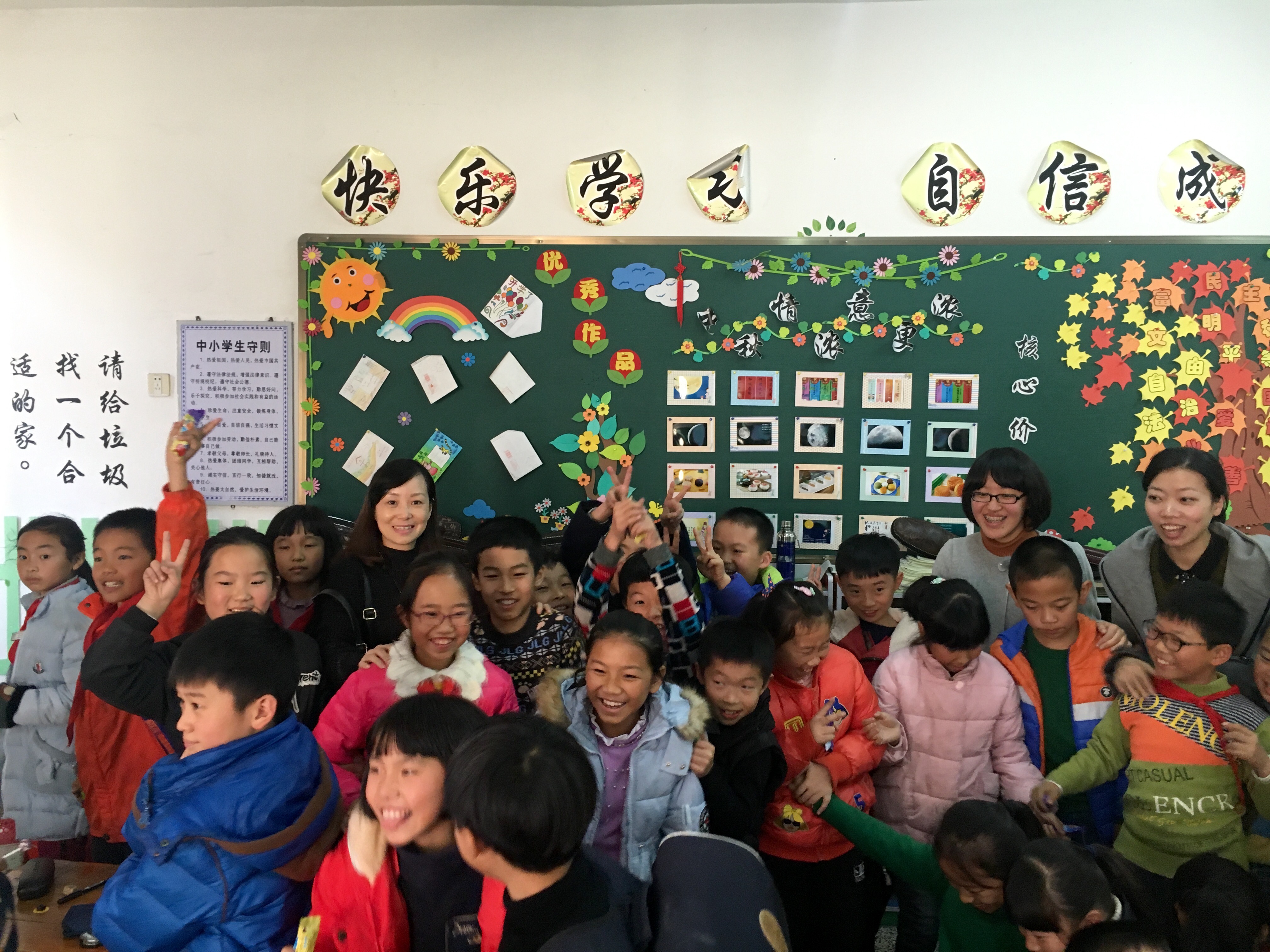 “williamhill官网新青年下乡,对接乐清市虹桥镇的活动已经走过一年多的时间,我们的教育学子们深入基层,发挥师范气质和专业特长,在南岳、蒲岐、大乌石等文化礼堂开展了丰富多彩的活动,真正实现了‘受教育、长才干、做贡献’的活动宗旨。”丽君副书记说道。在颁奖活动之后几位知心姐姐成员分别以画自画像、百科知识问答、正确解决生活中的人际矛盾为主题,为三个班的学生开展了班会课活动。课堂上,同学们表现活跃,积极举手发言。小队通过体验式游戏,分享、发表感言等形式与孩子们沟通、互动。课堂气氛良好,体现了温大教院创新教育的特色,“博·爱·雅·艺”的师范气质及突出的教育教学技能和教育创新能力。