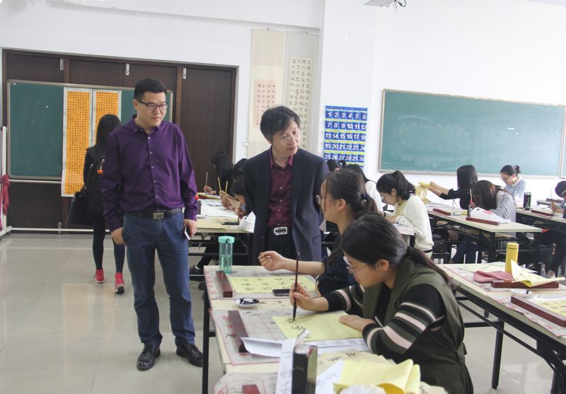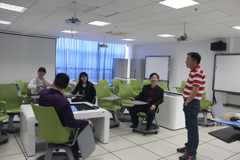 苏教授主要考察参观了教育心理学实验室、虚拟仿真实验室、沙盘实验室、未来教室与书法实验室。参观过程中,胡瑜副院长简要介绍了实验中心的发展思路、建设运行情况及建设成果,苏教授对实验中心先进的设备和教育理念表示赞许,现场与老师们就实验室建设、实验教学等方面进行了深入的交流,并对相关实验室建设提出了宝贵的建议。