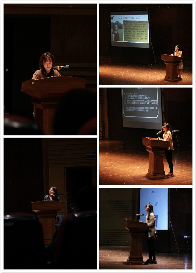 陶云瑛同学的考研科研经历让在场同学产生浓厚的兴趣,幽默而贴合实际的谈吐更让同学们记住这个善于拼搏奋斗的女孩。而来自14学前专1班的包珊珊, 用俏皮独特的口吻将自己的学习方法娓娓道来。她在正确认识自己的前提下为自己制定了独特的学习方式——通过别人学习。此外,荣获省大艺展、国家大艺展一等奖的她,分享了排练期间的酸甜苦辣,给学前的孩子们带来了许多启迪与反思。