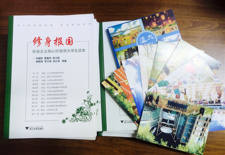 学院给每位与会的同学赠送了一本《修身报国——社会主义核心价值观大学生读本》,并为与会同学准备了一张手绘温大明信片,希望每位同学在会后,写一句祝福或思念的话语,寄给家里的父母,以表达感恩之情。