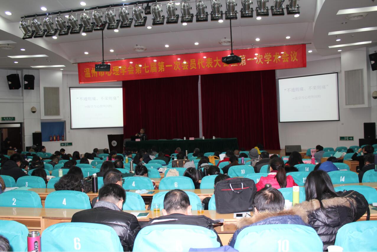 2016年1月24日,正值温州寒流的第一天,呼啸的冷风席卷而来,然而零下7摄氏度的严寒没有阻挡我们的热情,温州市心理学界的同仁们齐聚William威廉继续教育大楼报告厅,出席温州市心理学会第七届第一次会员代表大会暨第一次学术年会。温州市心理学会成立于1999年,是温州市心理学工作者依法登记、自愿组成的、具有公益性、学术性的法人社会团体,是温州市科学技术协会的组成部分,是集教育、临床医学、社会工作等各领域心理学专家于一体的人才资源库,是发展温州市心理科学事业的重要社会力量。此次代表大会的召开是温州市心理学界的一件大事,更是温州市心理学会发展史上的一个盛典。